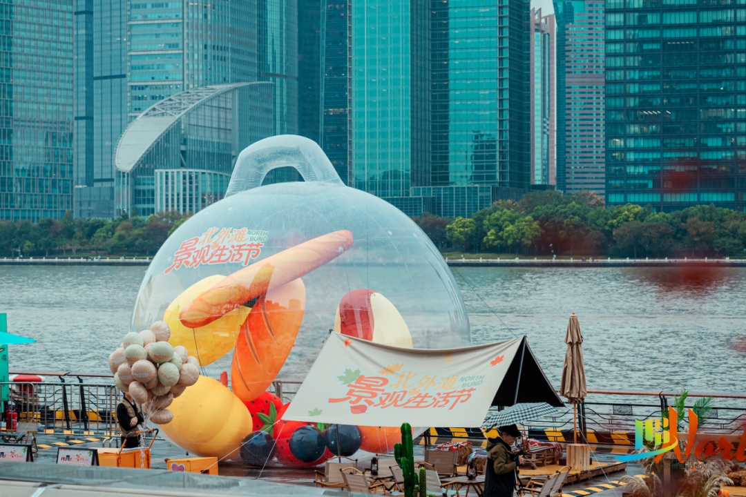 位于国客中心片区的滨江野餐区,是本届北外滩景观生活节最聚人气的“网红”打卡点之一。