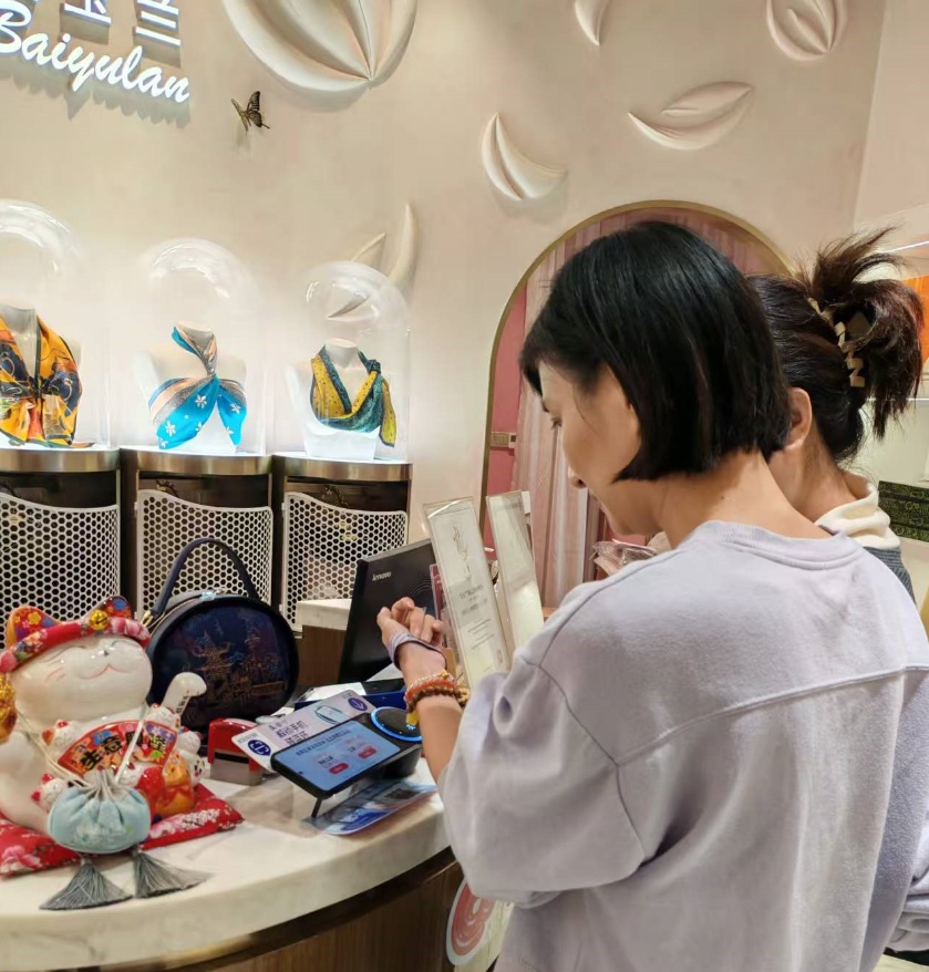 需要提醒的是,国潮馆内展品仅供展示,若看到了心动好物,可凭手环到店消费,白玉兰香袋、藏红花面膜等惊喜优惠等你来领!