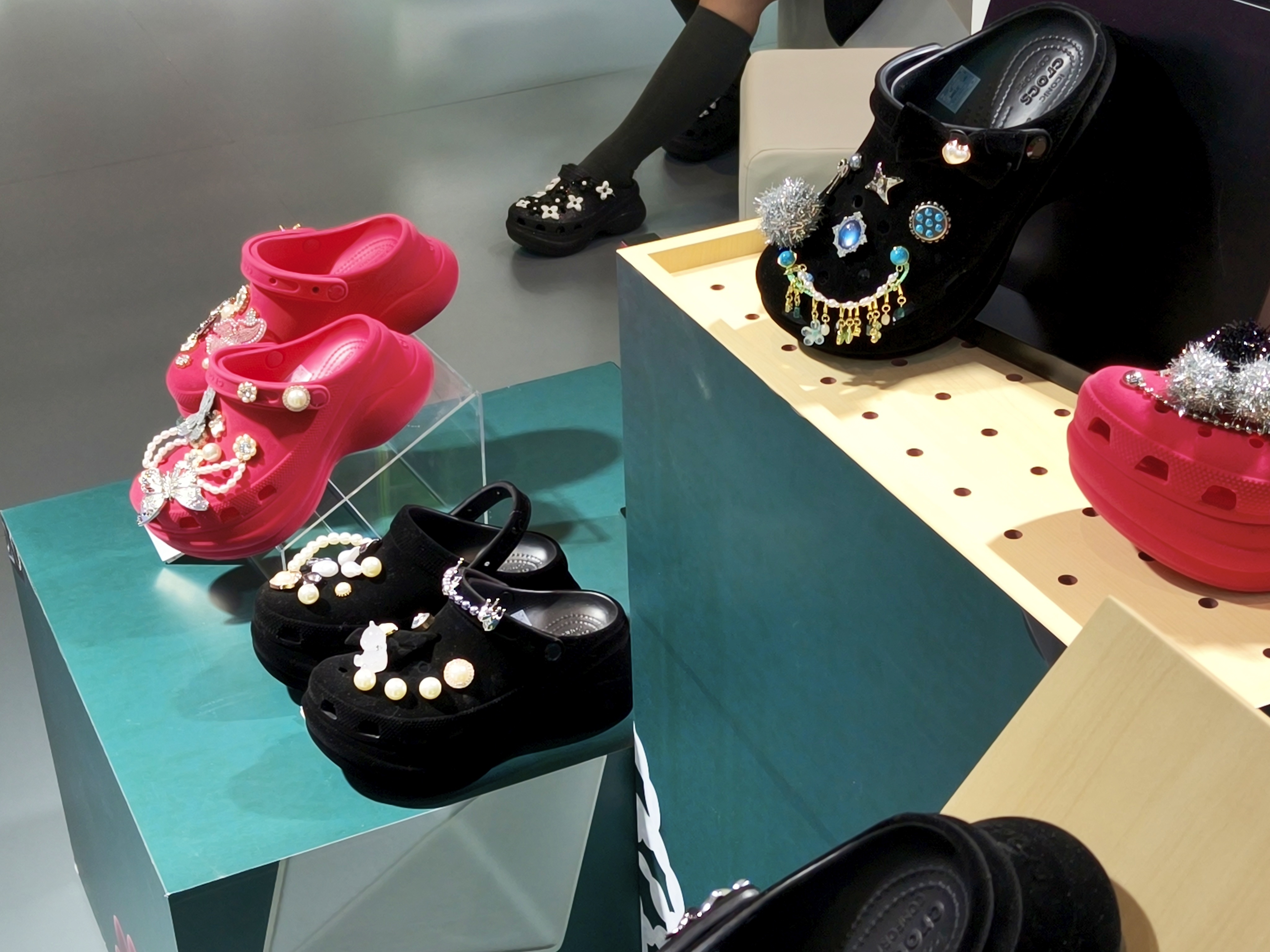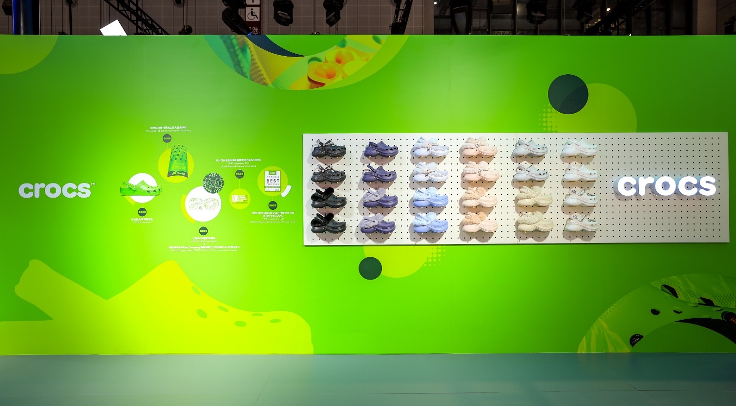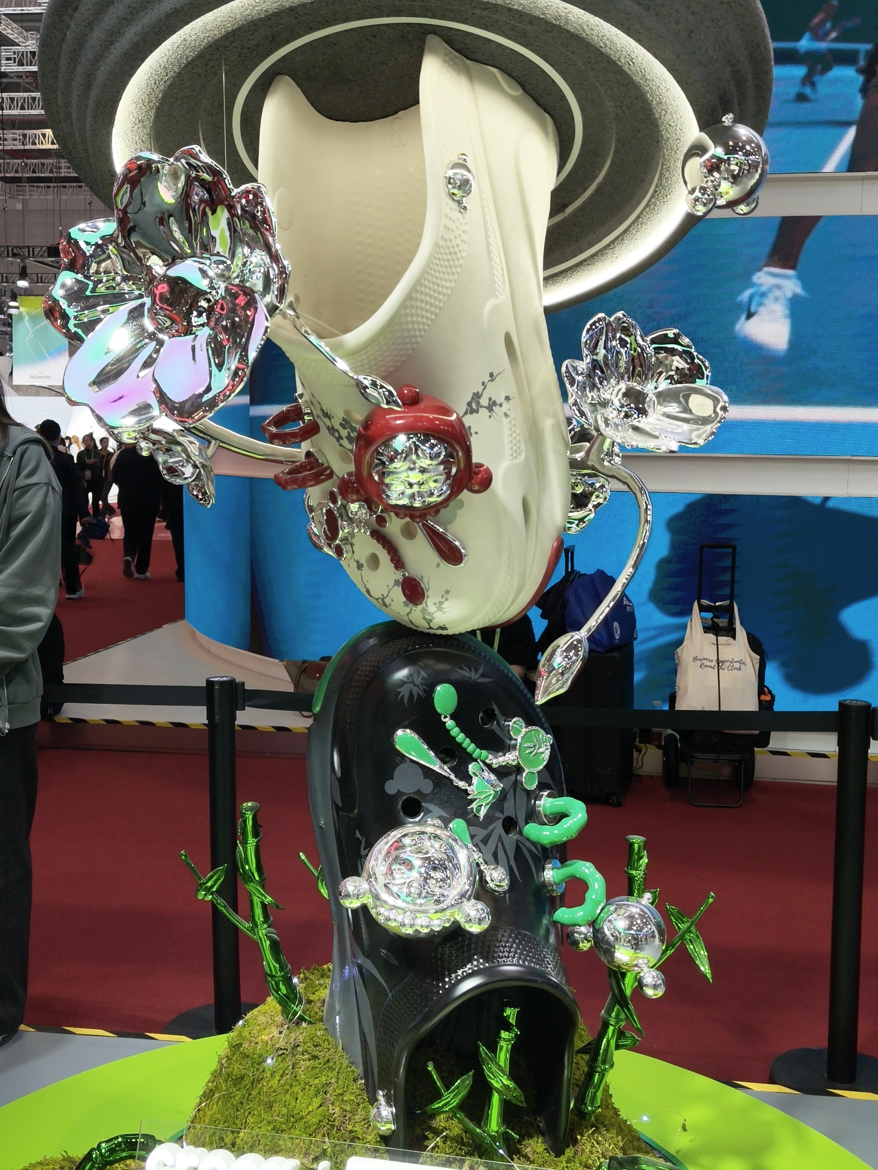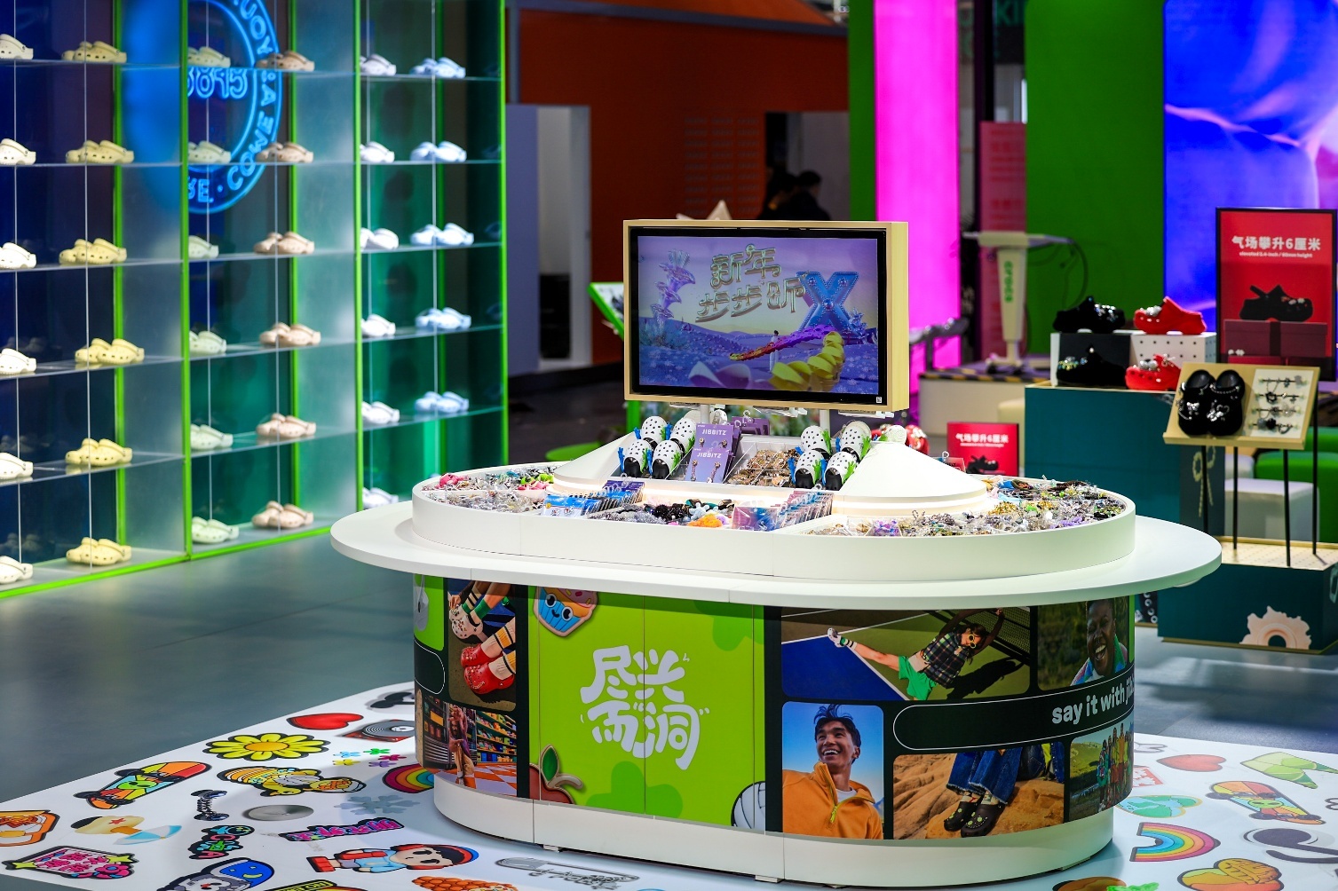 在Crocs卡骆驰展台,观众能近距离了解品牌发展历程与经典鞋款的设计故事,并探索全新潮流单品。