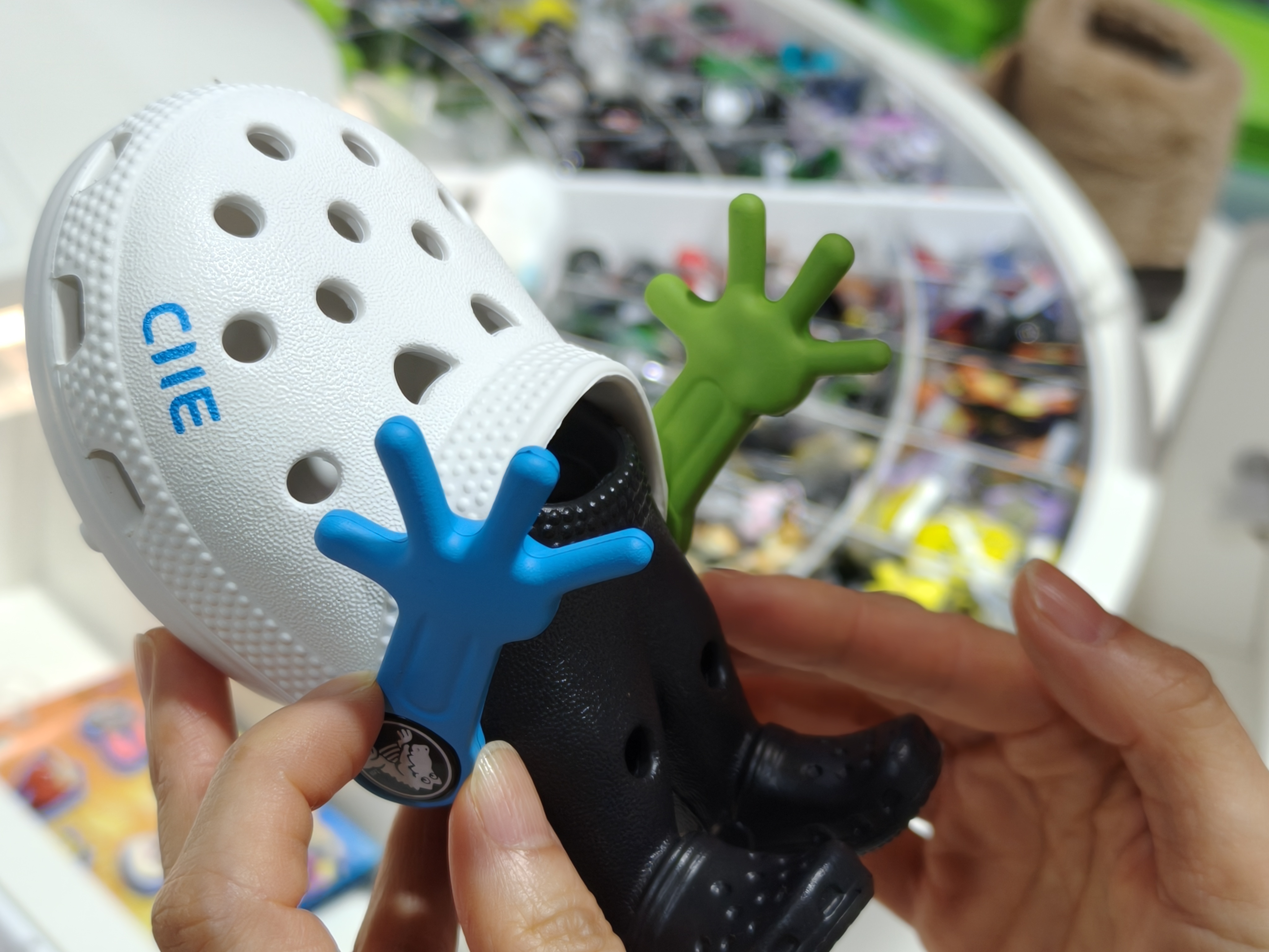 此外,为庆贺重回进博会舞台,Crocs卡骆驰特别推出为进博会限量定制的潮酷“洞仔”,搭配进博会限定版Jibbitz™智必星鞋花,展现品牌独特的玩趣与个性表达。