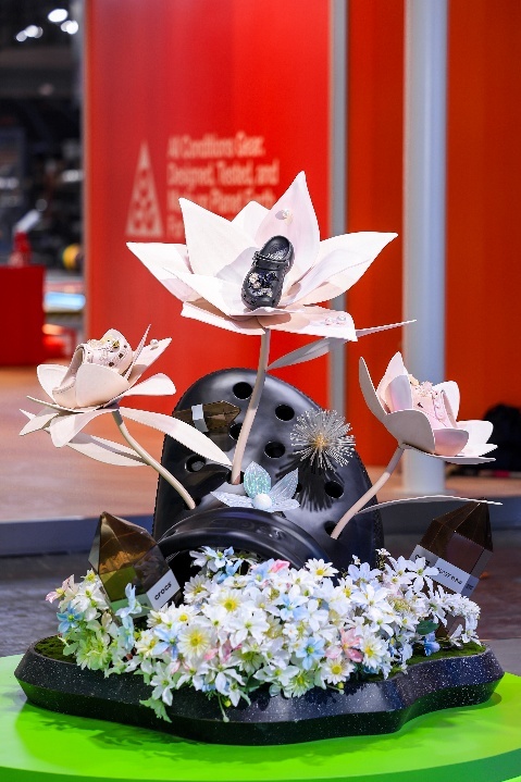 这里提供的鞋花令人眼花缭乱,展台入口的巨型“洞洞鞋”上甚至还有一碗逼真的“螺蛳粉”。在进博会期间,卡骆驰展台同步推出线下互动活动,观众可通过展台打卡或下单并分享至社交平台参与赢取限量好礼,共享进博热潮。