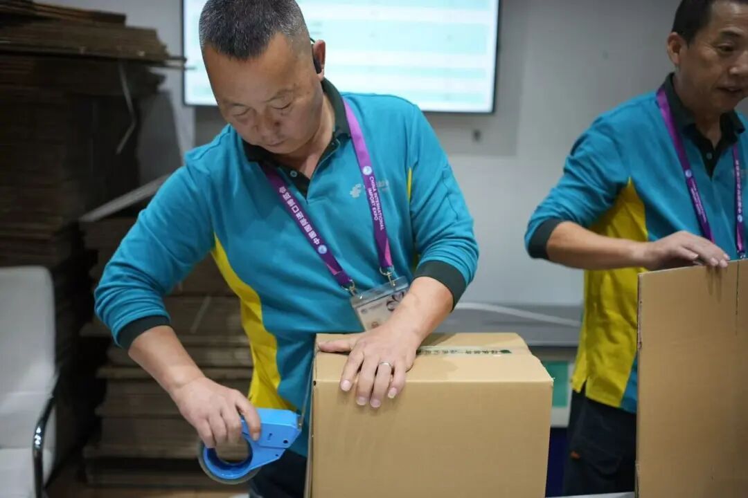 据悉,今年邮政服务继续提供现场寄递服务,方便参展观众随时将购买的商品寄往目的地,实现“货比人先到家”。“所有收寄后的馆内邮件于每日日终由专车驳运至徐泾营业部封发发运,且寄件价格与场外保持一致。”徐泾邮政支局局长郭淳说,“随着展会推进,预计每日寄递量将逐步上升,单日散件业务有望达到近千件。”来自甘肃的毛先生在体验邮政寄递服务后表示:“今天采购了不少生活用品和特色食品,数量多、路程远,自己携带很不方便,看到馆内就设有邮政寄件点,立即办理寄递,十分方便。”