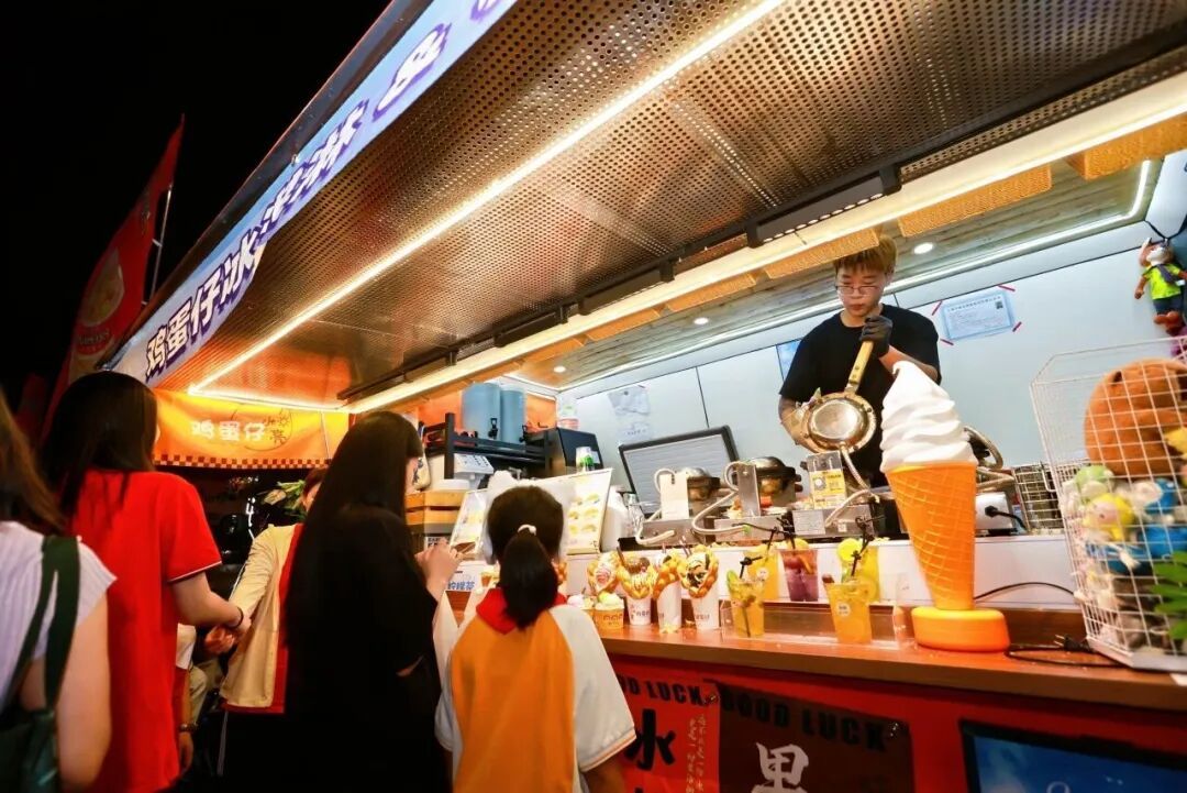 夜市摊档的喧闹与悠闲的生活节奏相映成趣