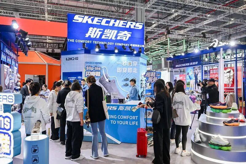 值得一提的是,斯凯奇在本届进博会打造了集互动体验与公益实践于一体的沉浸式展台,通过多元方式与消费者深度链接。例如,参展观众可通过“租鞋”服务亲身感受舒适科技的加持。