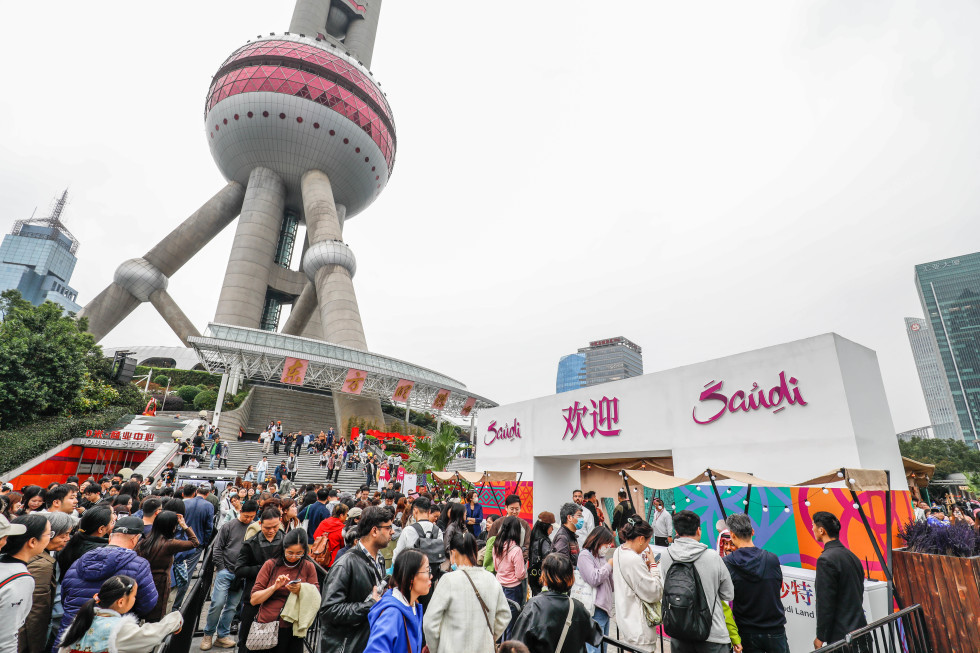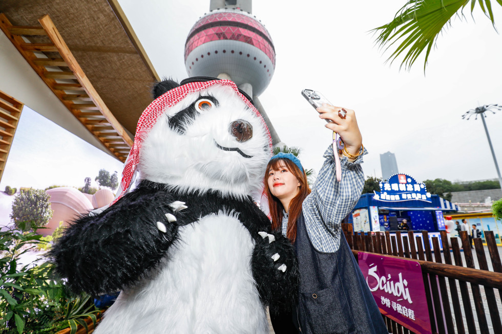 11月8日起,一座“沙特小镇”空降东方明珠塔下,就连中国国宝大熊猫都“入乡随俗”,戴上了阿拉伯头巾。本次活动以“感受地道沙特生活”为主题,打造了占地超1000平方米的沉浸式展区,涵盖音乐、舞蹈、美食、手工艺与旅行资讯,营造原汁原味的沙特风情,为市民游客带来为期八天的沉浸式文化体验。