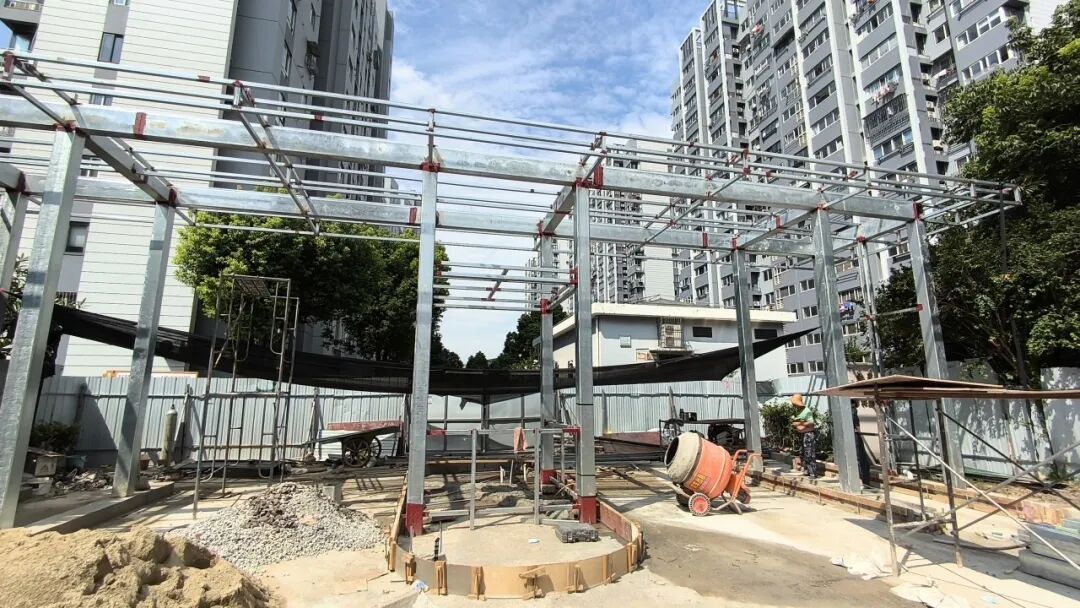 改造工程于7月底正式开工。居民区党总支负责统筹协调各项工作,业委会全程参与方案优化与监督,物业积极配合施工保障,“三驾马车”配合默契,各司其职。改造团队对大门结构进行了全面升级,增设社区门头,优化设施设备与照明布局,力求打造安全美观的社区入口新形象。