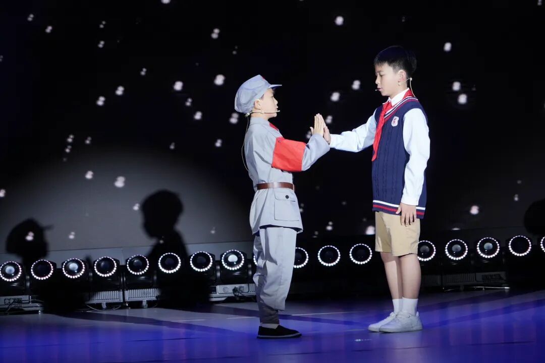 “这是我们探索思政教育校本化的成果。思政也可以生动有趣,我们要用鲜活生动的实践性参与方式让学生去理解难以读懂的长征精神。”陆莉莉介绍,学校形成了“学期递进式”思政学习体系:第一学期,各年级通过道德与法治课、“从长征到新长征”综合实践活动,打下红色文化基础;第二学期,学生自主报名加入音乐剧、合唱、朗诵等社团,最后用音乐剧的形式呈现学习成果,并纪念学校的历史发展与传承。