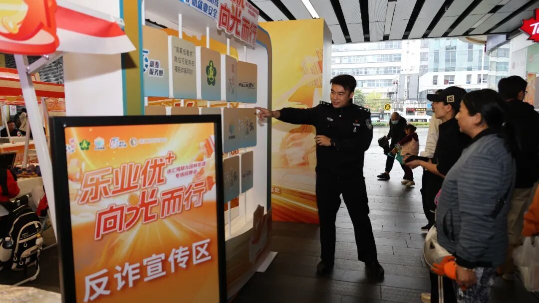 除了两大特色服务,现场设置的反诈护航区、阳光手作区、残疾人政策与培训咨询区也各有亮点。反诈护航区里,田林派出所民警通过“真假招聘案例对比”“快问快答闯关”等互动形式,教求职者识别“先交押金再入职”“高薪兼职刷单”等骗局;阳光手作区中,“阳光之家”学员的布艺玩偶、编织挂毯与非遗匠人现场演绎的掐丝珐琅、糖画技艺同台展示,既传递了特殊群体的活力,也让招聘会多了份文化温情;政策咨询区则为企业和求职者解读残疾人就业补贴、保障金减免等政策,上海市现代食品职业技能培训中心等机构推介的西点烘焙、咖啡制作课程,更打通了“技能学习—认证—就业”的通路。现场推出的“乐业集章卡”机制还让参与感倍增,求职者集满企业面试、职业咨询等印章,就能兑换阳光之家学员手作的卡套或非遗插画,每份礼品都承载着“融合共融”的心意。