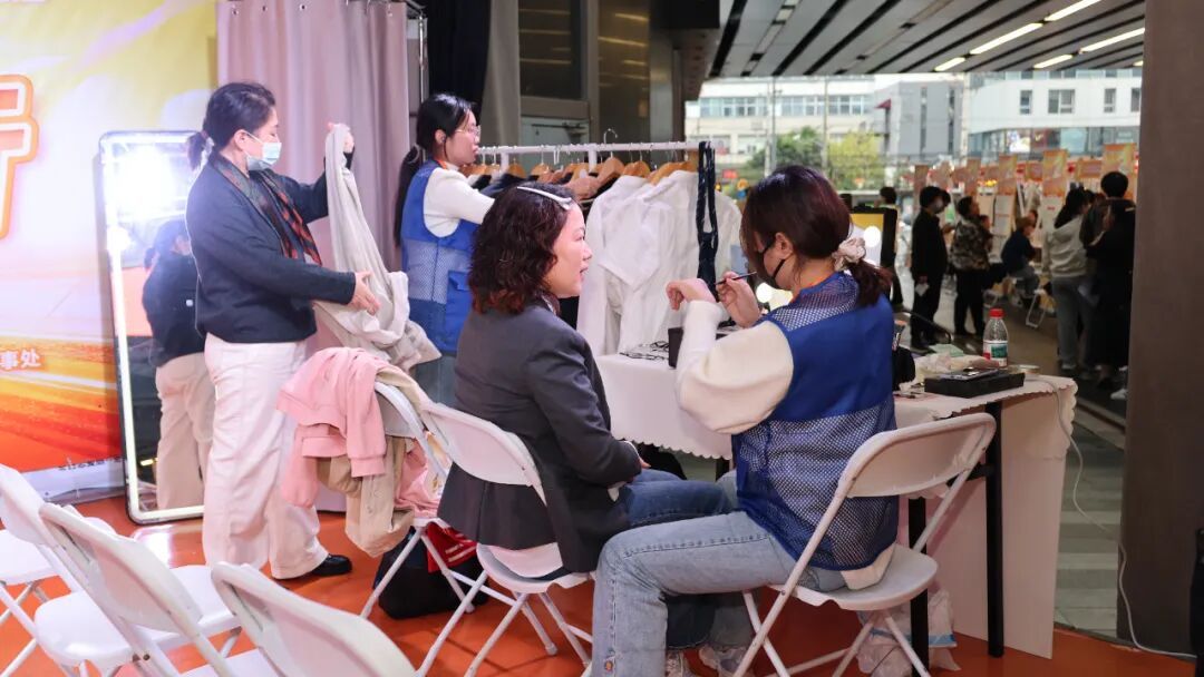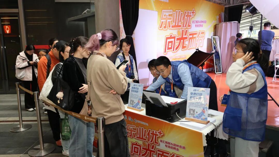 “化妆师帮我画了自然的眉形,摄影师还指导我笑起来更放松,这张证件照比之前的好看多了!”11月7日下午,徐汇日月光中心商场内的乐业优+向光而行”专场招聘会上,待业青年小王拿着刚打印好的免费求职照,难掩喜悦。当天,这场由徐汇区人社局指导,徐汇区残联、区就业促进中心与田林街道办事处联合主办的招聘会,凭借大学生创业项目免费妆造拍摄、手语翻译全程助残等特色服务,成为金秋时节里温暖求职者的“就业加油站”。