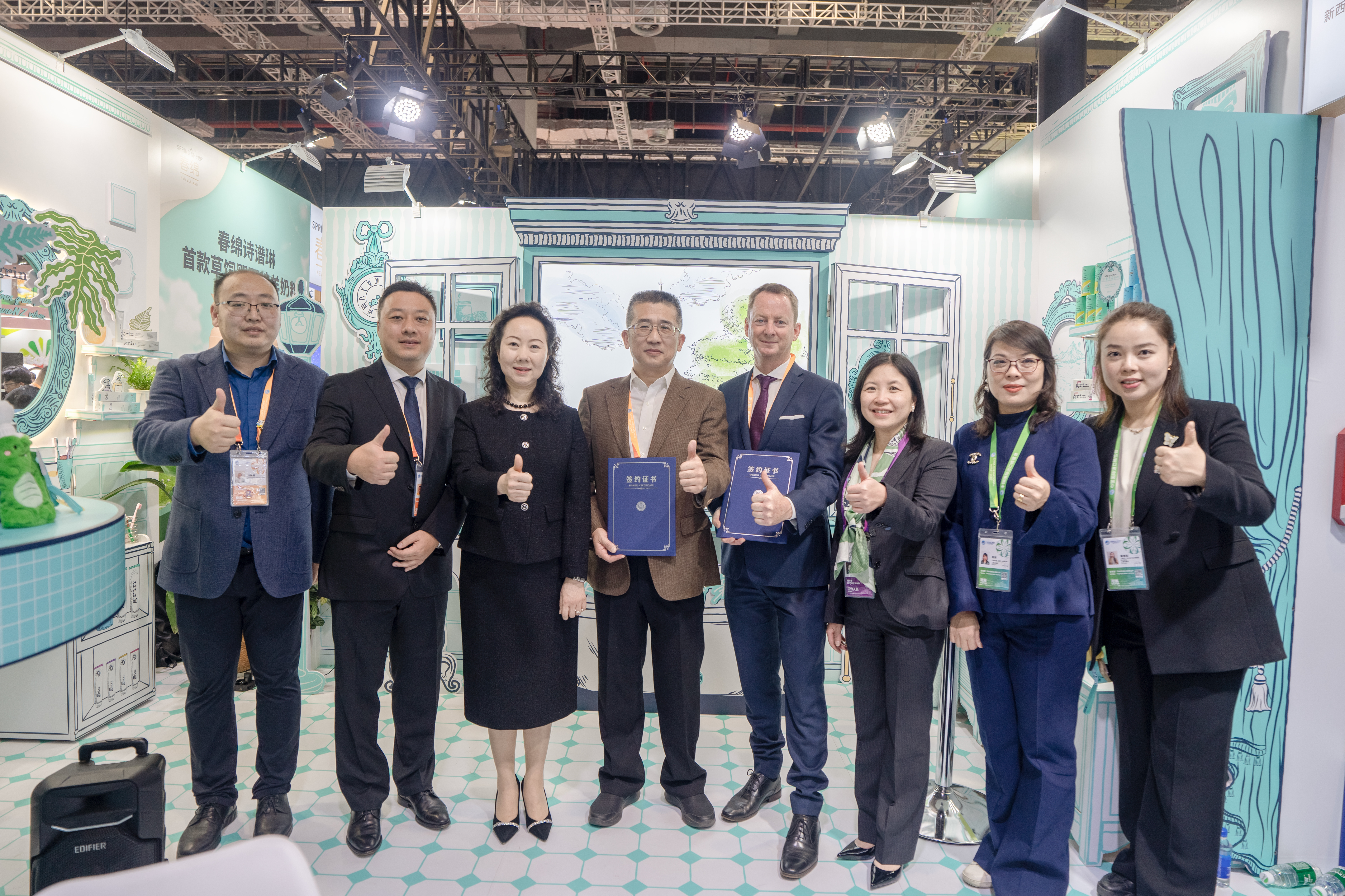 值得一提的是,2025年正值grin品牌成立十周年。11月9日,新西兰贸易部长Todd McClay亲临展位,参与grin十周年剪彩仪式,肯定品牌多年来在可持续口腔护理领域的努力与成果。