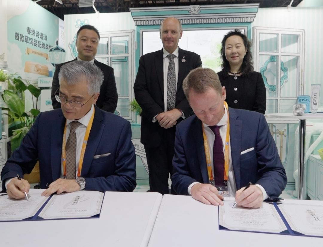 进博会期间,grin 展台迎来多位重磅嘉宾。新西兰驻华大使Jonathan Austin、上海市外商投资协会秘书长范红等嘉宾莅临现场,共同见证grin与上海嘉会医疗、上海外服雇员工会战略合作备忘录的签署。