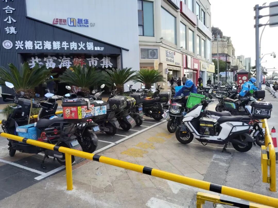 午餐时段临近,开元地中海商圈迎来订餐高峰期,外卖员马俊快速将电动自行车停放在规范停车区内,利落锁车快步走向商店。“以前还要‘一步三回头’,就怕随便停在路边的车子被撞倒,现在有了专属区域,我们更安心,送餐速度也更快。”马俊连连称赞的正是商圈最新设置的“骑手停车点”。很难想象两个月前,许多外卖车还横七竖八停放在人行通道上,导致行人穿行困难,更有甚者直接占据了非机动车道,造成大量安全隐患。