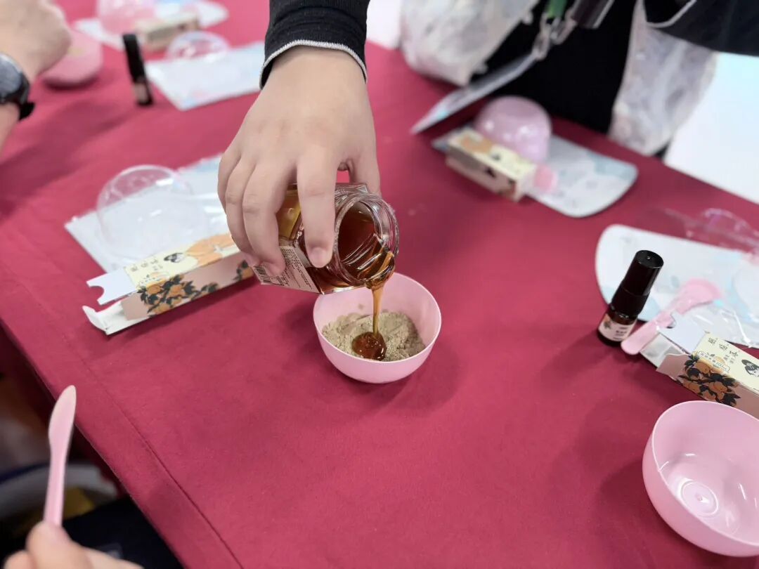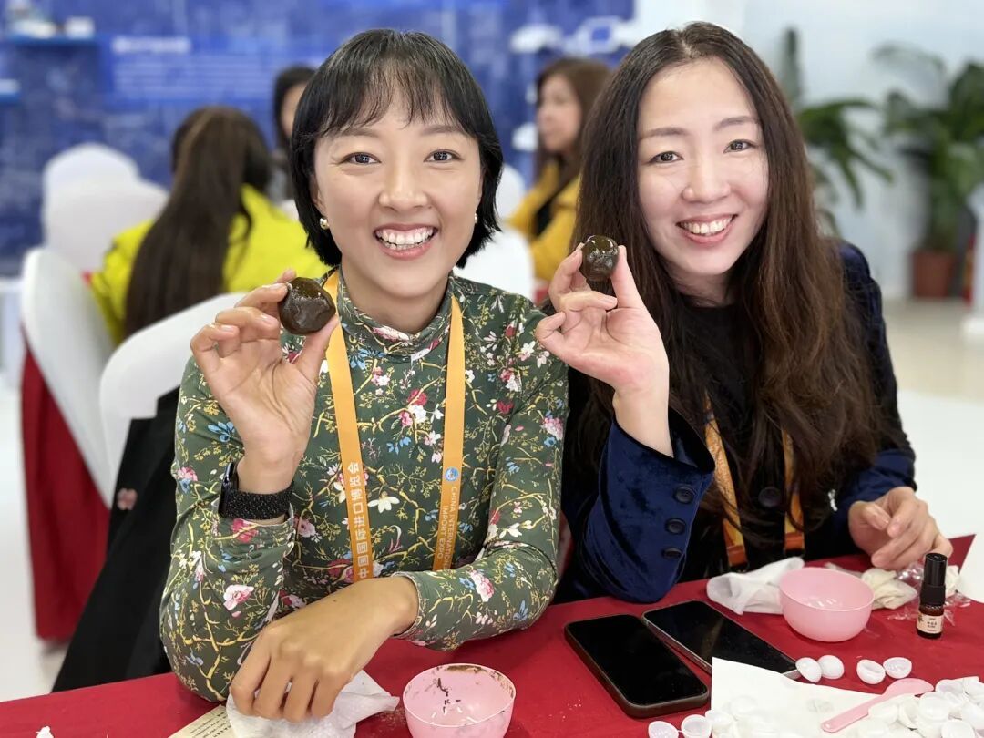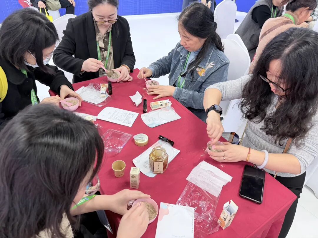为了让更多观众感受古老记忆的魅力,11月9日,一场以“古法新生”为主题的澡豆制作体验活动在进博会北外滩馆举行。孙佳沐容的工作人员带领嘉宾亲手制作天然澡豆,让古籍中的记载化为指尖可触的现实。
