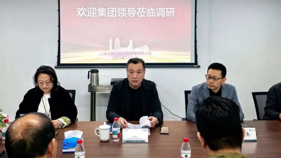 2025年11月5日上午,金外滩集团党委书记、董事长张振宇率队赴人民公园公司开展调研,集团副总经理杨杰、行政总监、政策研究室陪同调研,人民公园公司班子成员参加。