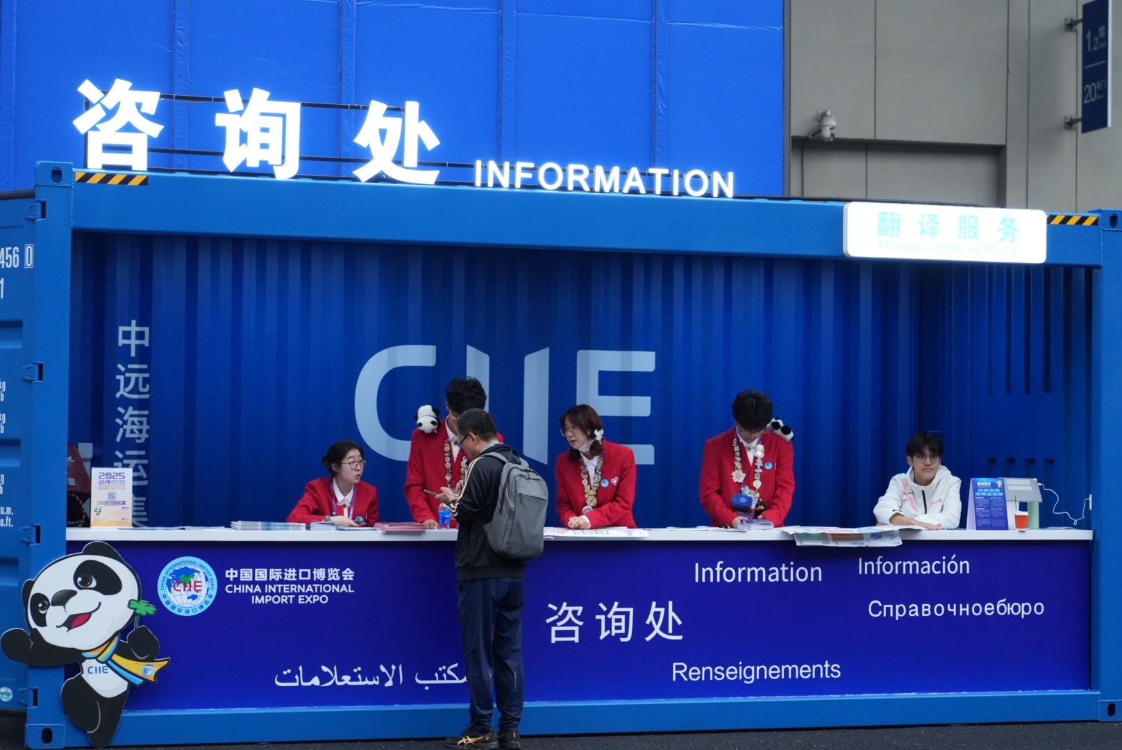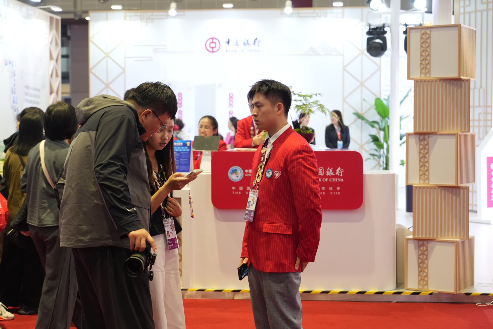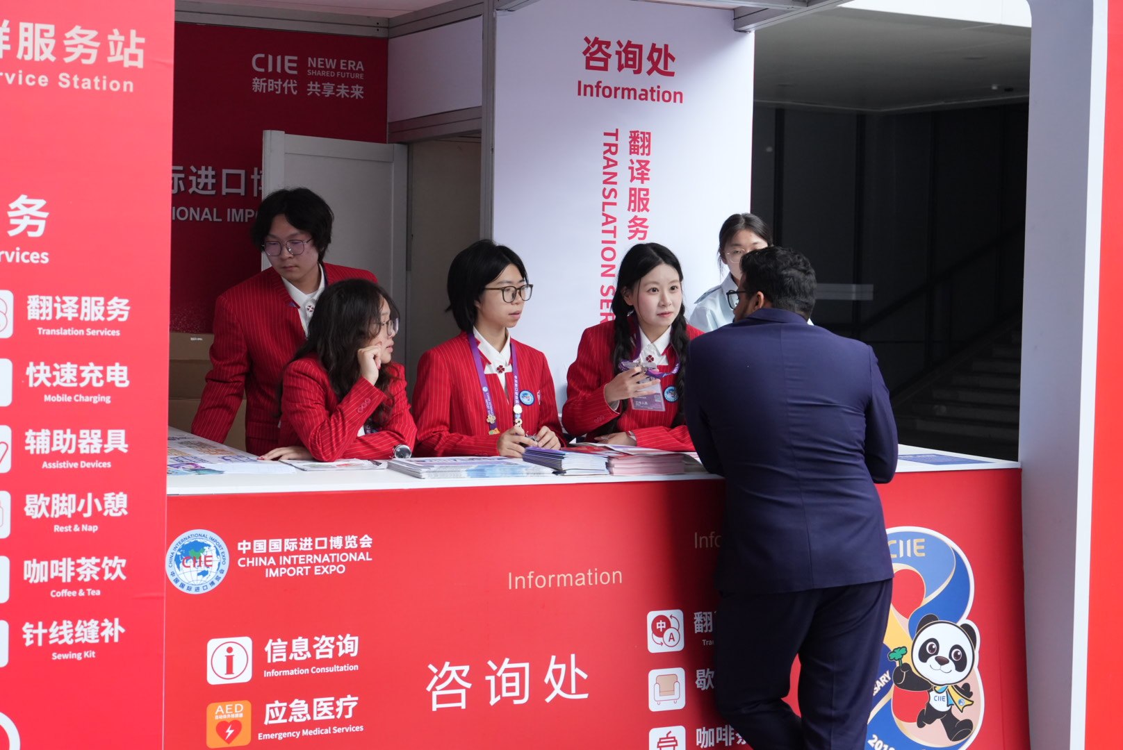 记者在现场看到,身穿红色工作服的“小叶子”们遍布在会场的各个角落。根据岗位的不同,他们或是为前来咨询的专业观众提供位置指引;或是为参展商进行资料翻译;闲暇之余,他们还会热情地帮远道而来的客人拍照留影,俨然成为进博会上一道亮丽的风景线。他们中有不少志愿者来自上海外国语大学。“我去年在进博会参观了许多阿拉伯国家展台,开阔了眼界,所以今年申请了志愿者岗位,希望能更多地了解进博会。”志愿者陈怡琳告诉记者。