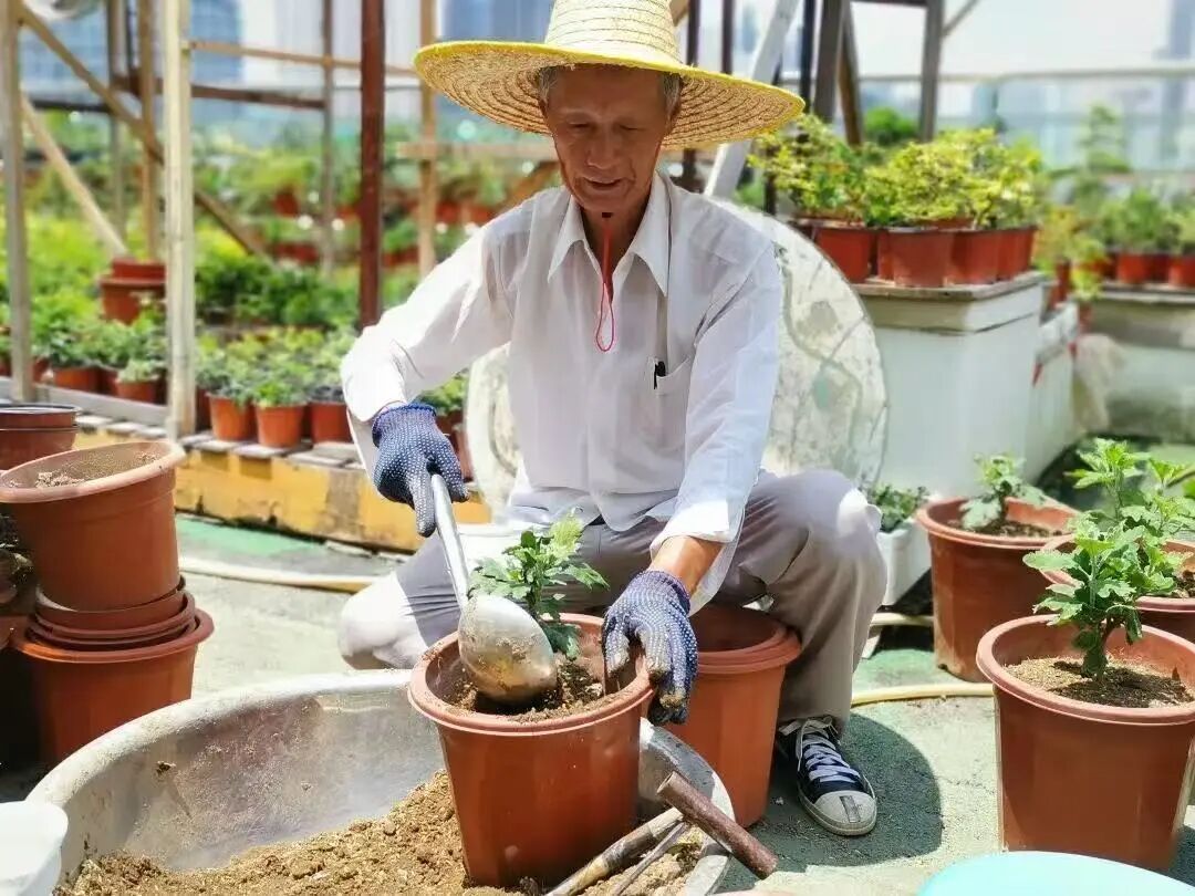每年菊花展上赵家花园的菊花,都是由上海非物质文化遗产“赵家花园菊花种植技艺”第八代传承人赵张永精心栽培的。