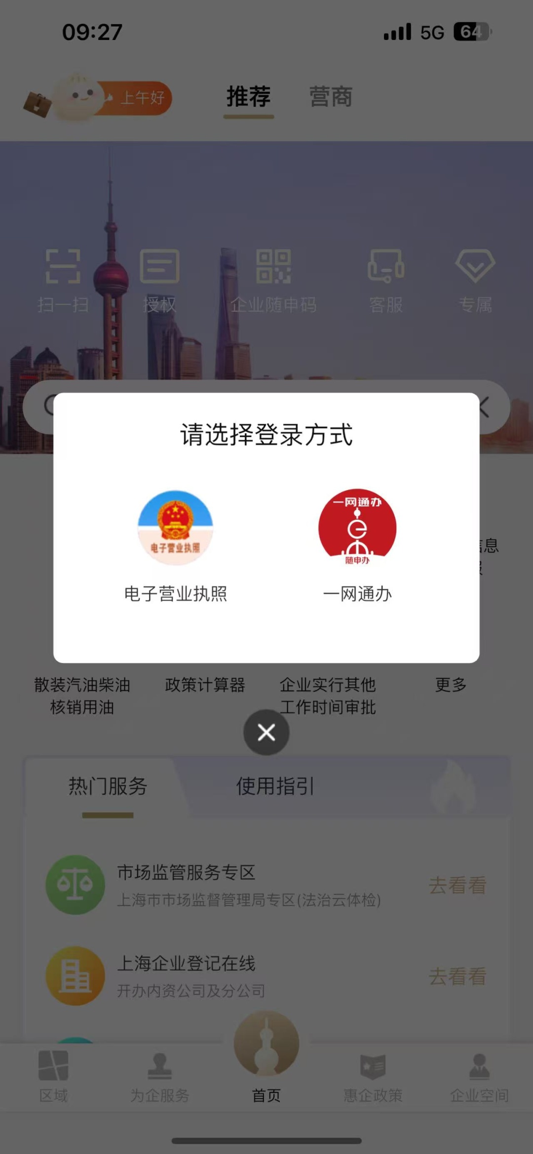 企业用户选择“法人登录”,再点击“电子营业执照登录”。要注意的是:需提前下载并使用“随申办”APP或电子营业执照APP、微信、支付宝、百度小程序扫一扫,才能顺利完成登录操作哦。