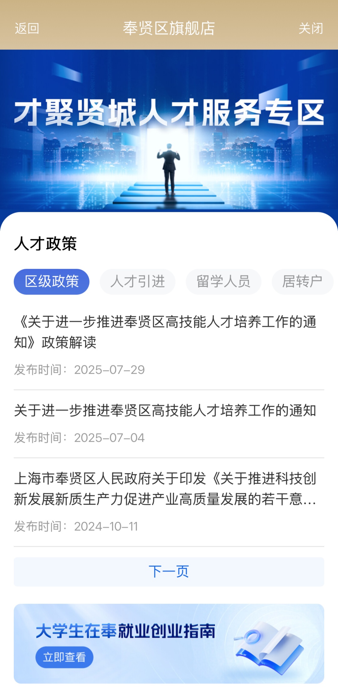 奉贤区着力打造“线上惠企服务专区”,依托“一网通办”PC端——奉贤区企业专属空间和移动端——“随申办”企业云奉贤区旗舰店,汇集了“政策体检”“精准政策推送”“随申兑·惠企政策精准服务平台”“免申即享”“知识产权”“人才服务”等功能,通过整合政策资讯、服务应用、惠企资源,为企业提供高效、便捷、贴心的线上服务,持续提升企业办事便利度和获得感,助力优化我区营商环境。