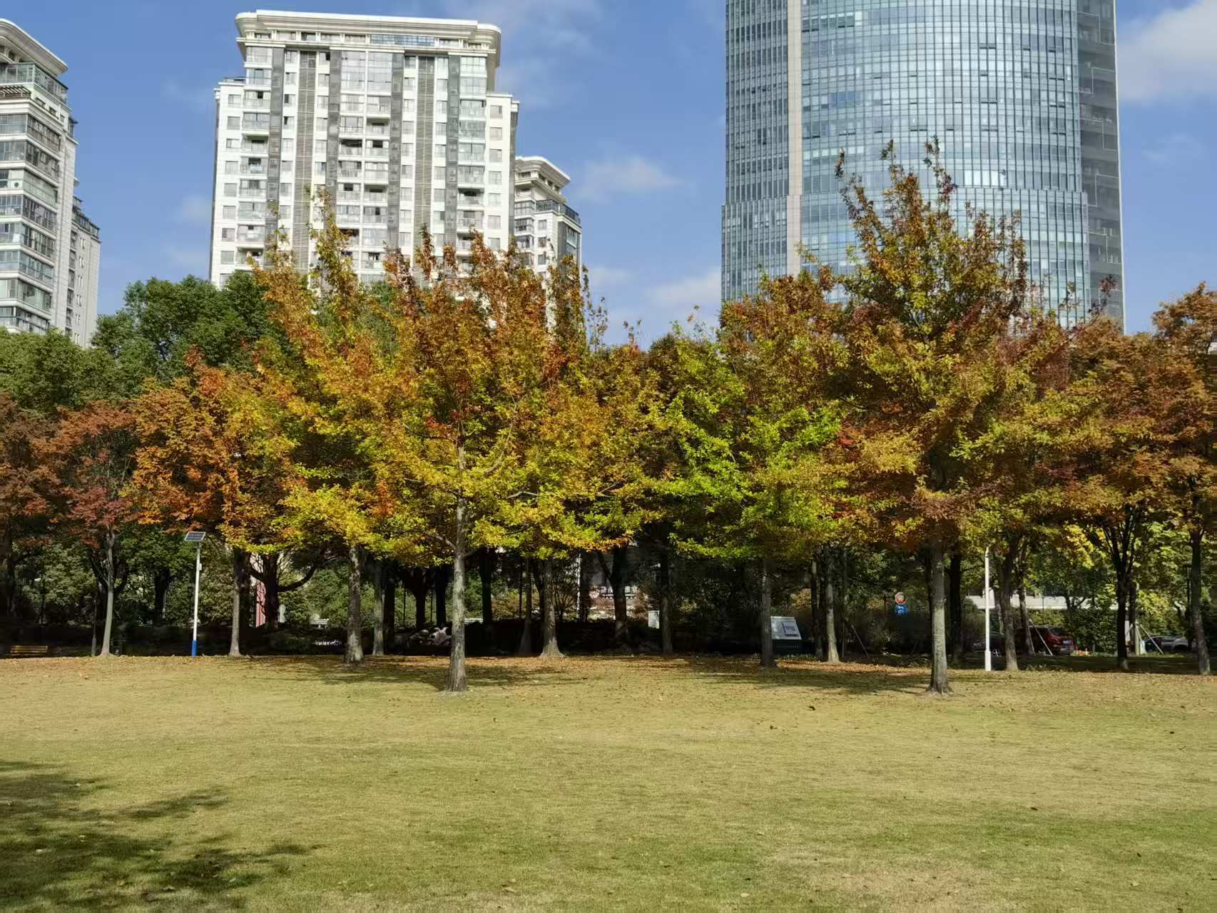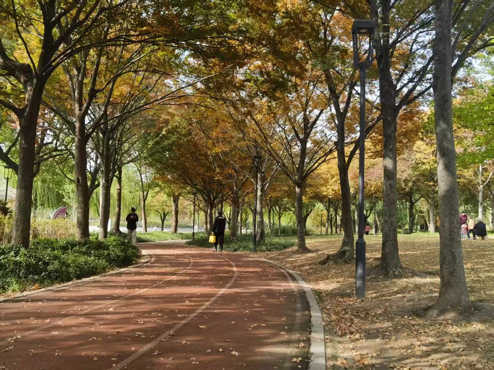 在松江中央公园里,不仅有好天气,还有好景色,金黄的银杏、红艳的枫叶,如同大自然的调色盘,美不胜收。“这里的景色特别好,能感受到浓浓秋意,特别舒服。”市民潘女士感叹。