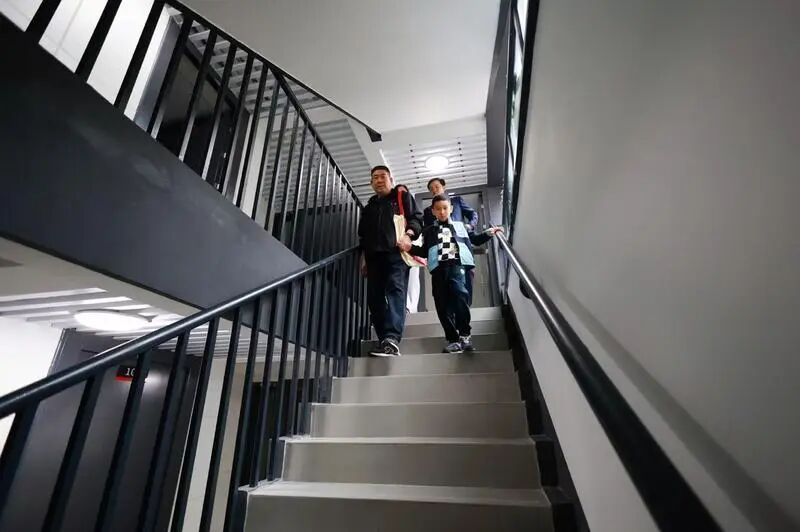 11月7日,记者走进普育东路101弄看到,焕新后的5层居住楼看上去很气派,现代化的简洁设计让这个昔日的老小区重焕荣光。“我们今天一早就来了,新房间老满意哦!”505室的罗敏豪见到记者时,满头大汗,他说楼上楼下已经跑了好几圈,一方面到老邻居那串门,另一方面熟悉一下小区环境,看了一天,反正就两个字:“满意!”“今年过年,能在新家过啦,我们已经都跟亲戚朋友讲好了,到时候大家一道聚聚。”