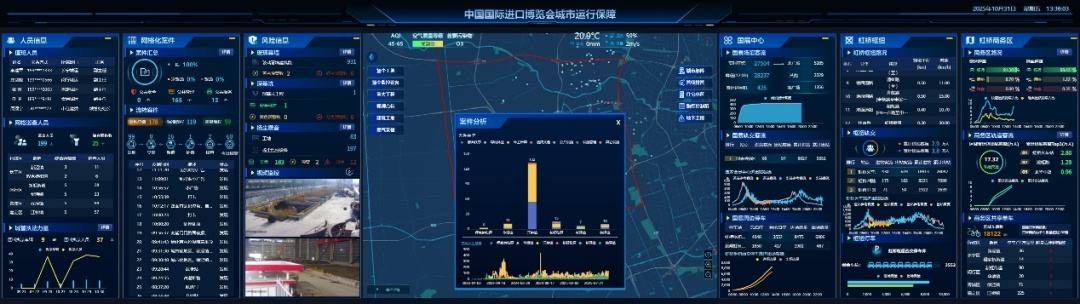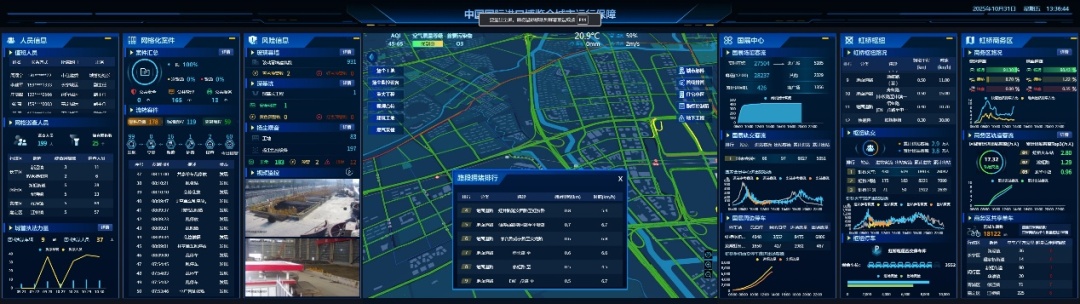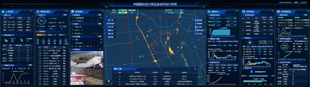 涵盖了快速路、地面道路、轨道交通和虹桥枢纽等交通信息,能够掌握大客流、交通拥堵情况,为客流引导、进博会交通出行提供辅助决策服务。