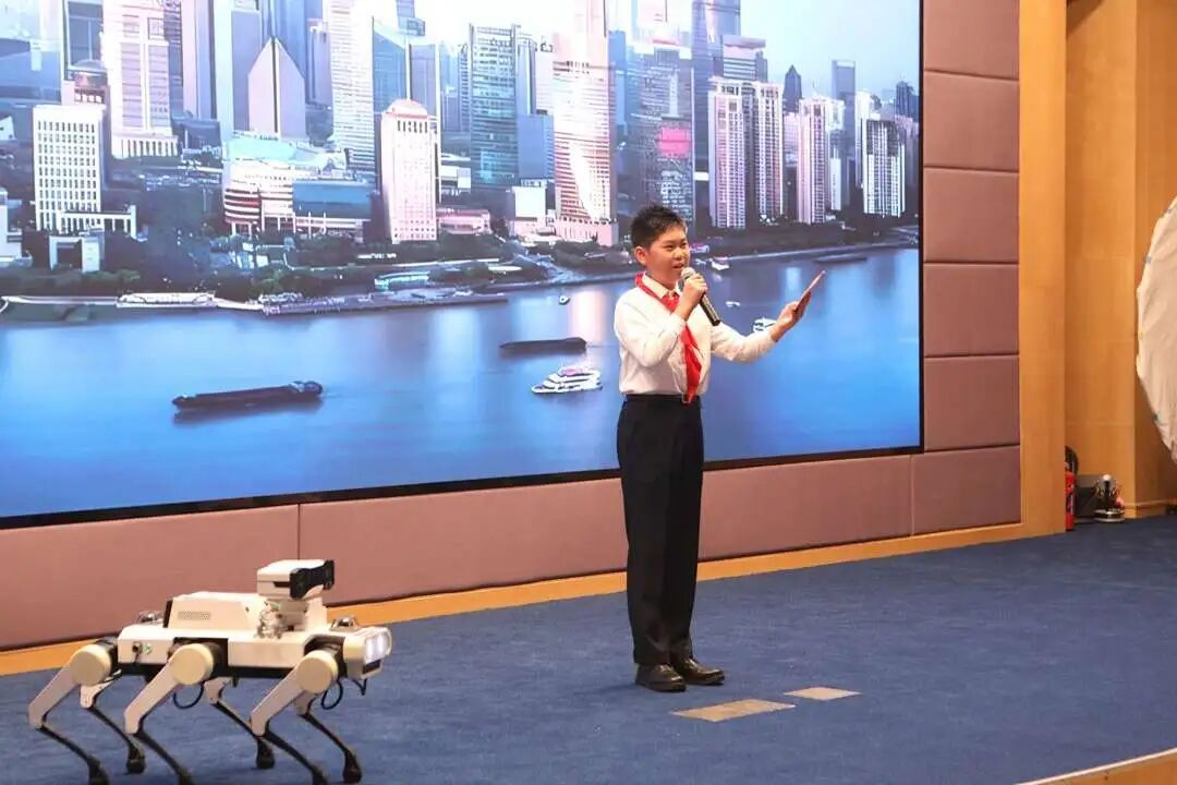 上海市红领巾讲解员、来自上海市洋泾菊园实验学校的莫亚曾作为少年代表上台分享。他以同龄人视角,分享对“数智未来”的理解与憧憬,展现出少年在科创道路上的探索追求,呼吁更多少年加入科创行列,书写科技篇章。