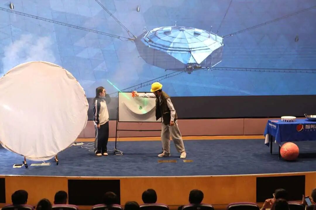智勇科创团队带来的科学舞台秀《大国重器 FAST》将活动推向高潮。表演不仅生动展现我国科技重器的硬核魅力,更让现场观众深切感受到背后科研工作者的坚守与执着,进一步激励青少年立志成为未来科创主力军,为创造更多大国重器积蓄力量。