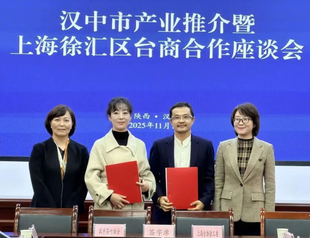 汉中市茶叶协会与徐汇区台协会共同签署了《缔结友好合作协议》。双方将依托徐汇区台协的平台资源,助力汉中优质茶叶拓展市场,持续提升品牌影响力与竞争力。