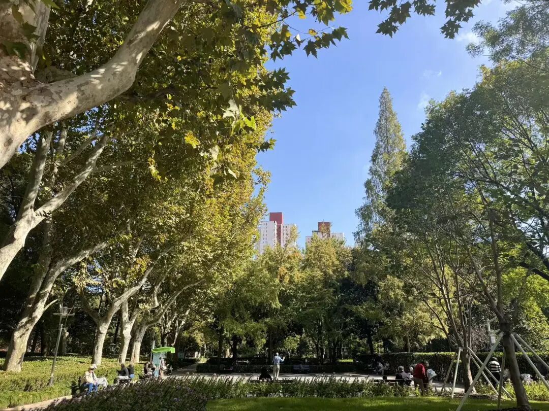 申城今日迎来久违的晴好天气,秋高气爽,阳光和煦。上午十点,徐家汇公园里不少市民游客在户外享受暖阳,有的三三两两坐在长椅上唠闲话;有的一招一式打着太极;也有的在乒乓球桌前上演着你来我往的友好切磋,处处洋溢着悠闲舒适的秋日气息。