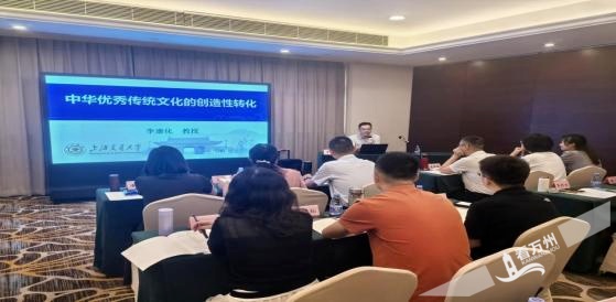首场专题教学由上海交通大学媒体与传播学院李康化教授讲授《中华优秀传统文化的创造性转化》。他从多维度深入解读中华优秀传统文化的内涵与价值,指出传统文化作为民族瑰宝,蕴含着丰富的精神内核。在新媒体环境下,应积极借助短视频、直播、社交媒体等新型传播方式,以创意内容活化传统文化资源,使其更贴近现代生活,焕发新的生命力。