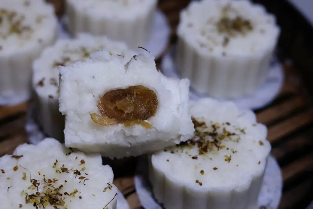 糯米粉210克、粘米粉180克、清水215克、白糖50克、蜜枣100克、干桂花3克。