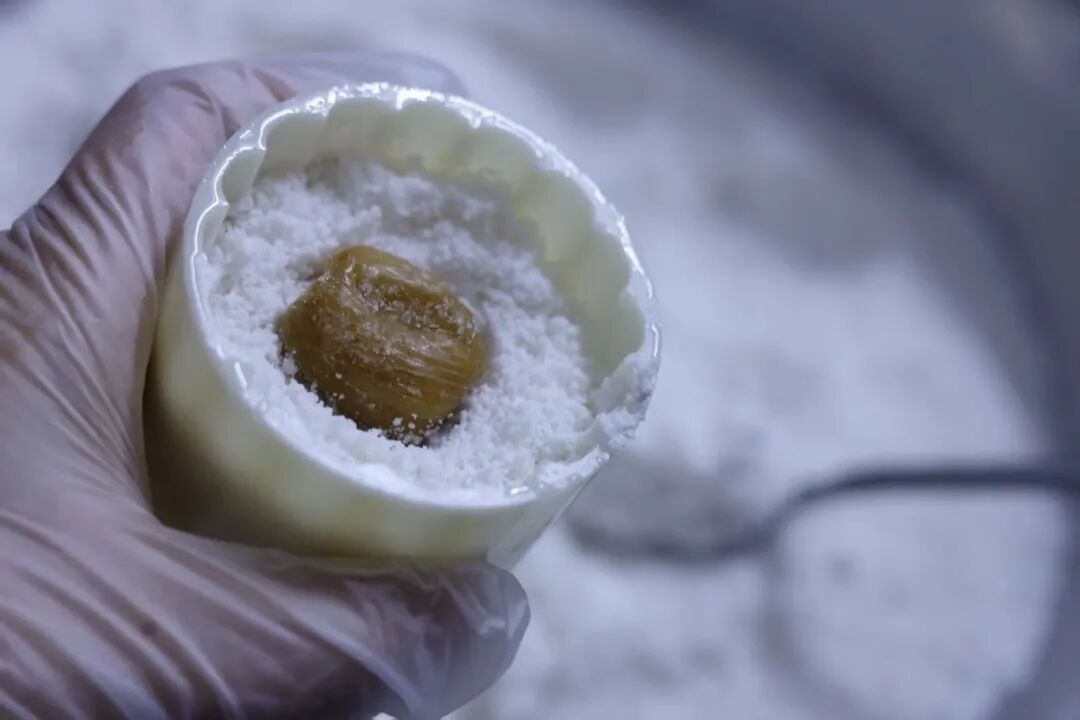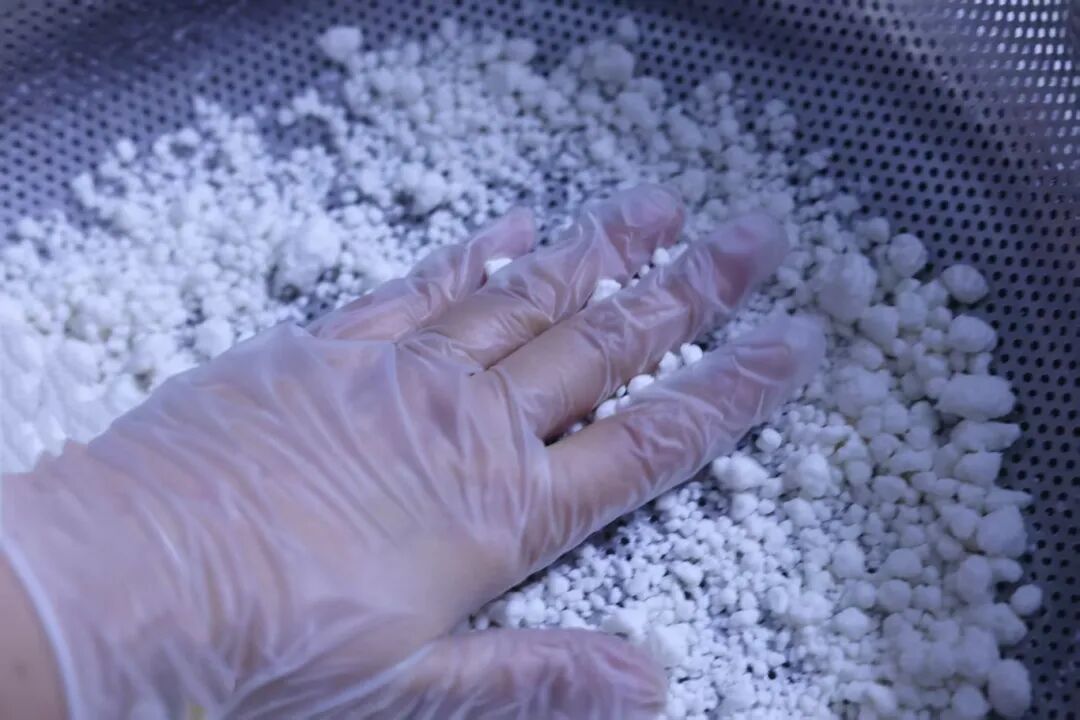 3.过筛成细腻的小颗粒状态。