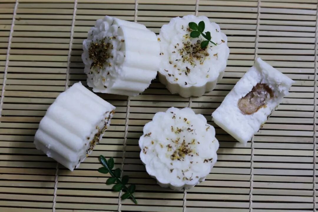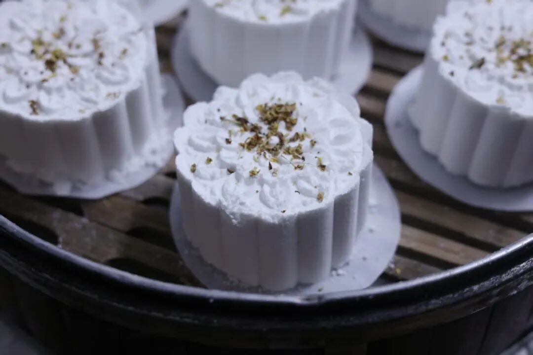 6.撒上干桂花,水开上锅中火蒸15分钟。