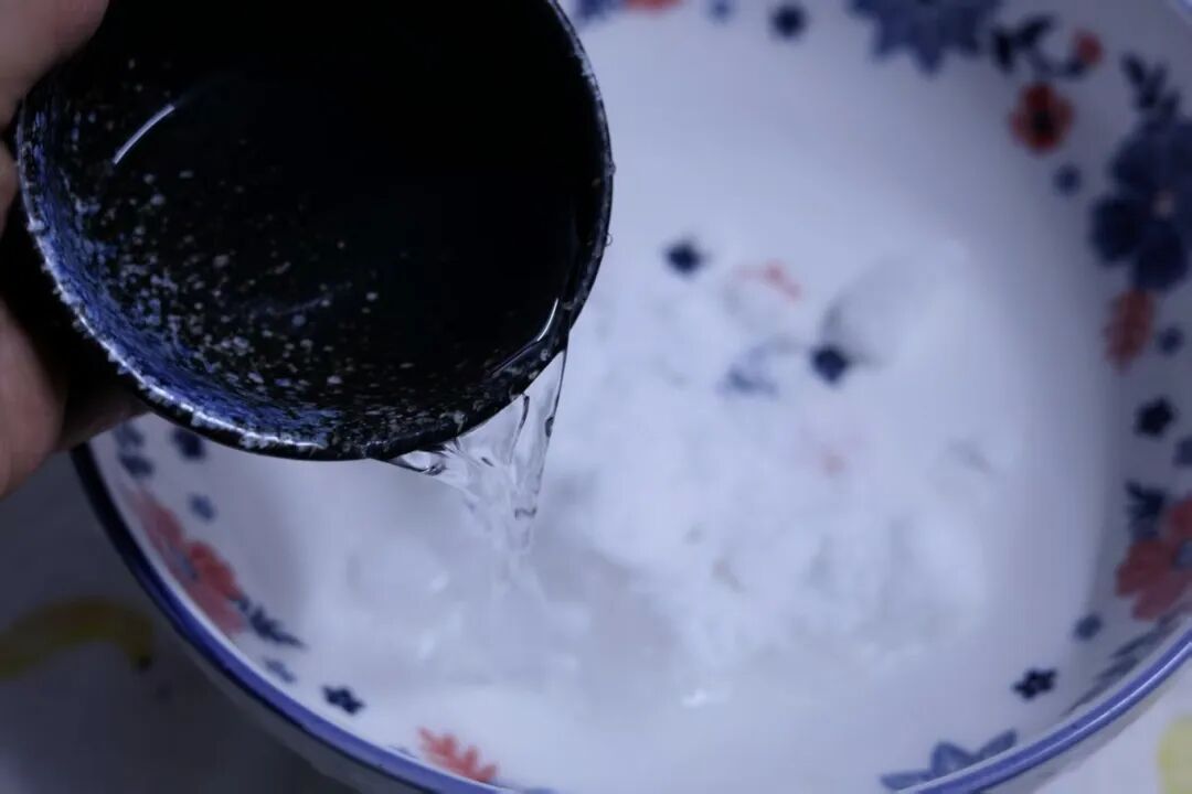 1.白砂糖中倒入清水,搅拌至融化。