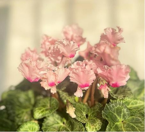 花叶共赏的优等生。只要阳光充足,肥水适量;仙客来的花朵就会蹭蹭地从叶下钻出,花期超长,可一直开花到明年5月。