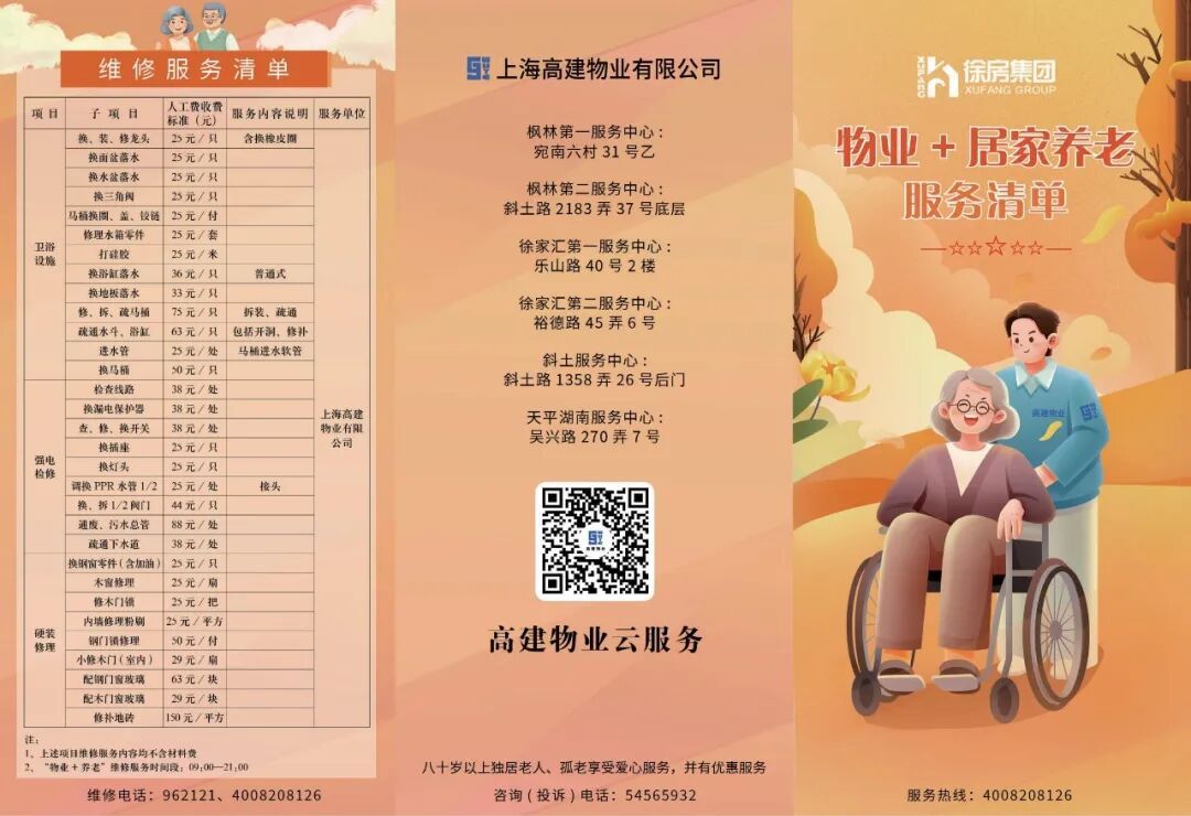 在服务中心建设前,高建物业联合街道、居民区党组织开展深入调研,建立起80岁以上独居老人、孤老及特殊老年群体的动态信息库,在乐山片区等六大区域推行“四张服务清单”(即维修服务清单、照料服务清单、家政服务清单、护理服务清单),更好地满足老年人多样化、多层次的需求。
