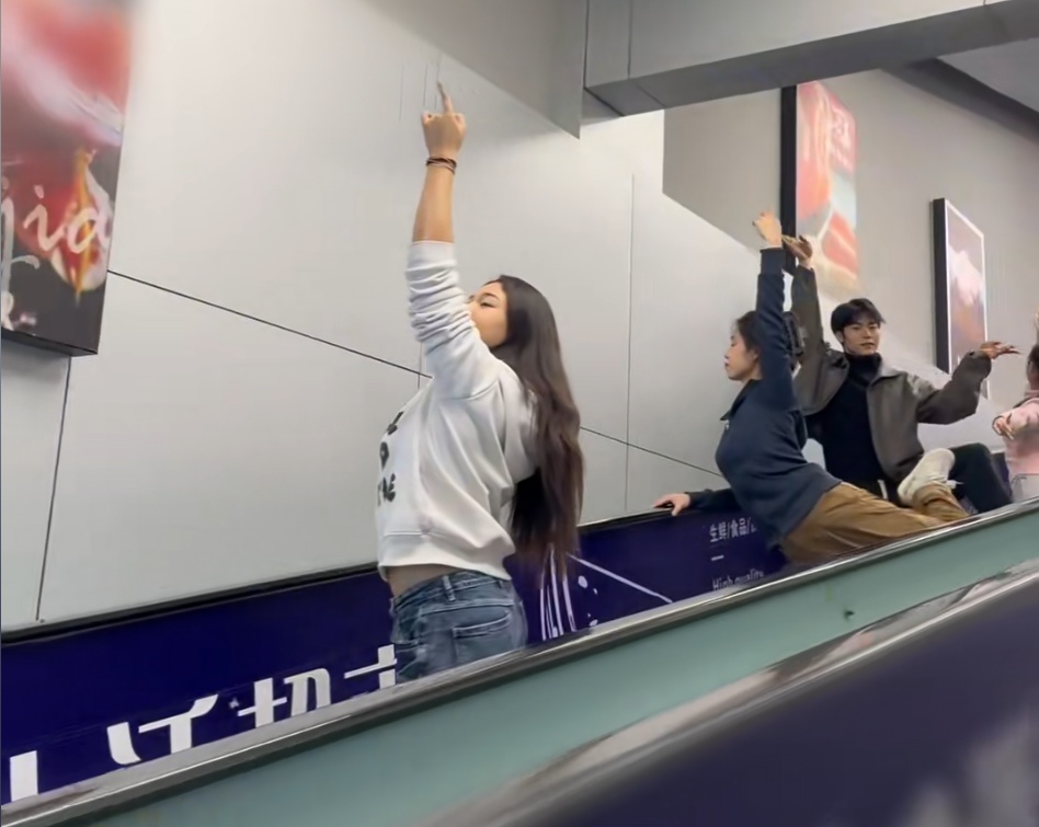 视频中做出“奇怪动作”的旅客