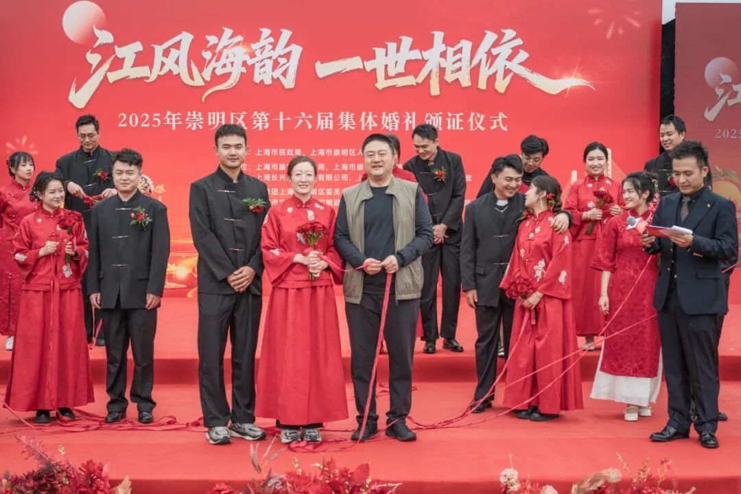 参加本次集体婚礼的新人中,既有教师、基层工作者和企业员工,也有扎根岛上的“新崇明人”。他们相识于工作、结缘于崇明,在这片生态岛上携手开启人生新篇章。“我们是通过沪滇协作认识的,崇明见证了我们的爱情。在这里举办婚礼,我们感受到了满满的爱与祝福。”一对新人说。