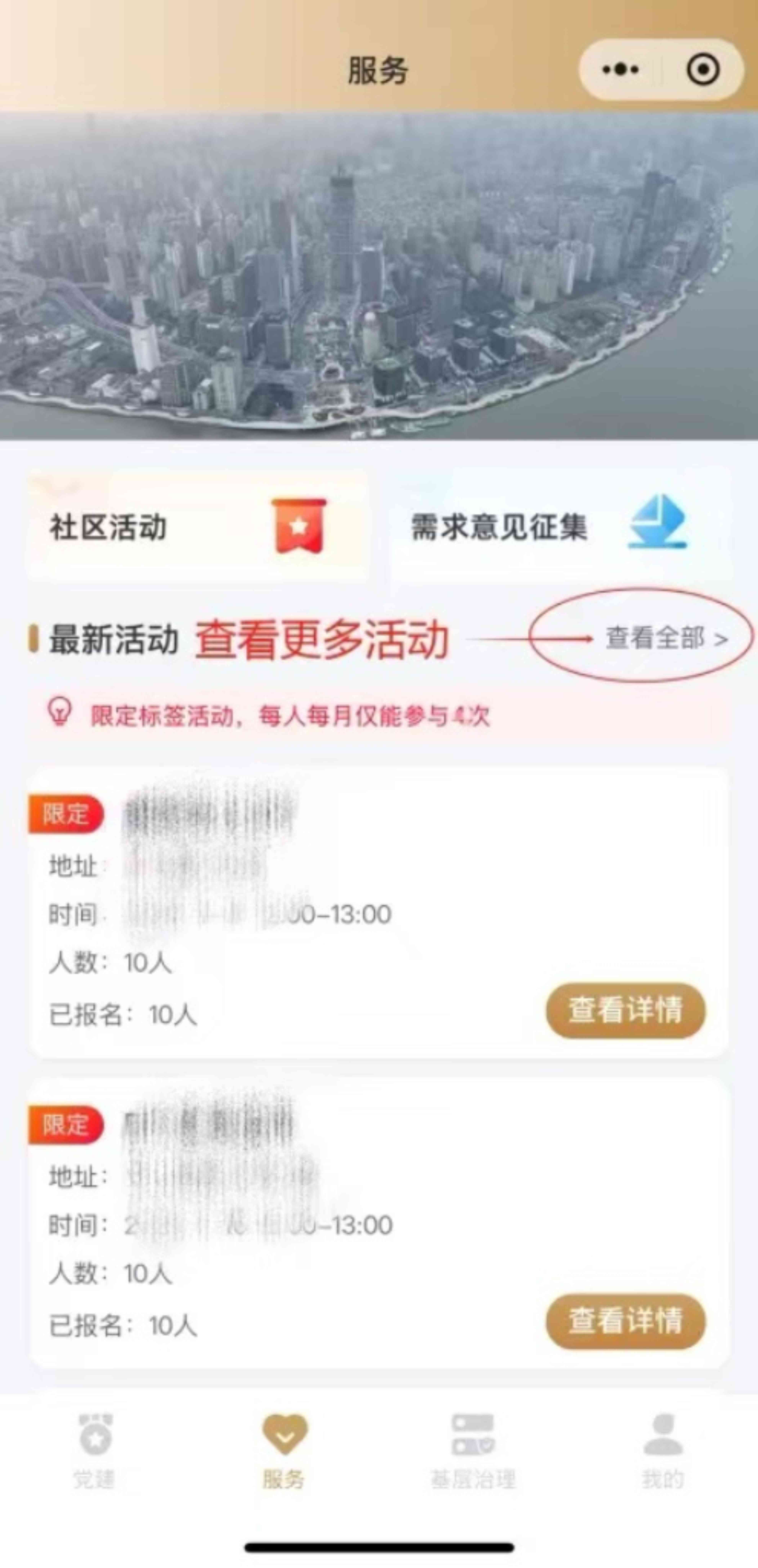 2、点击“服务”板块