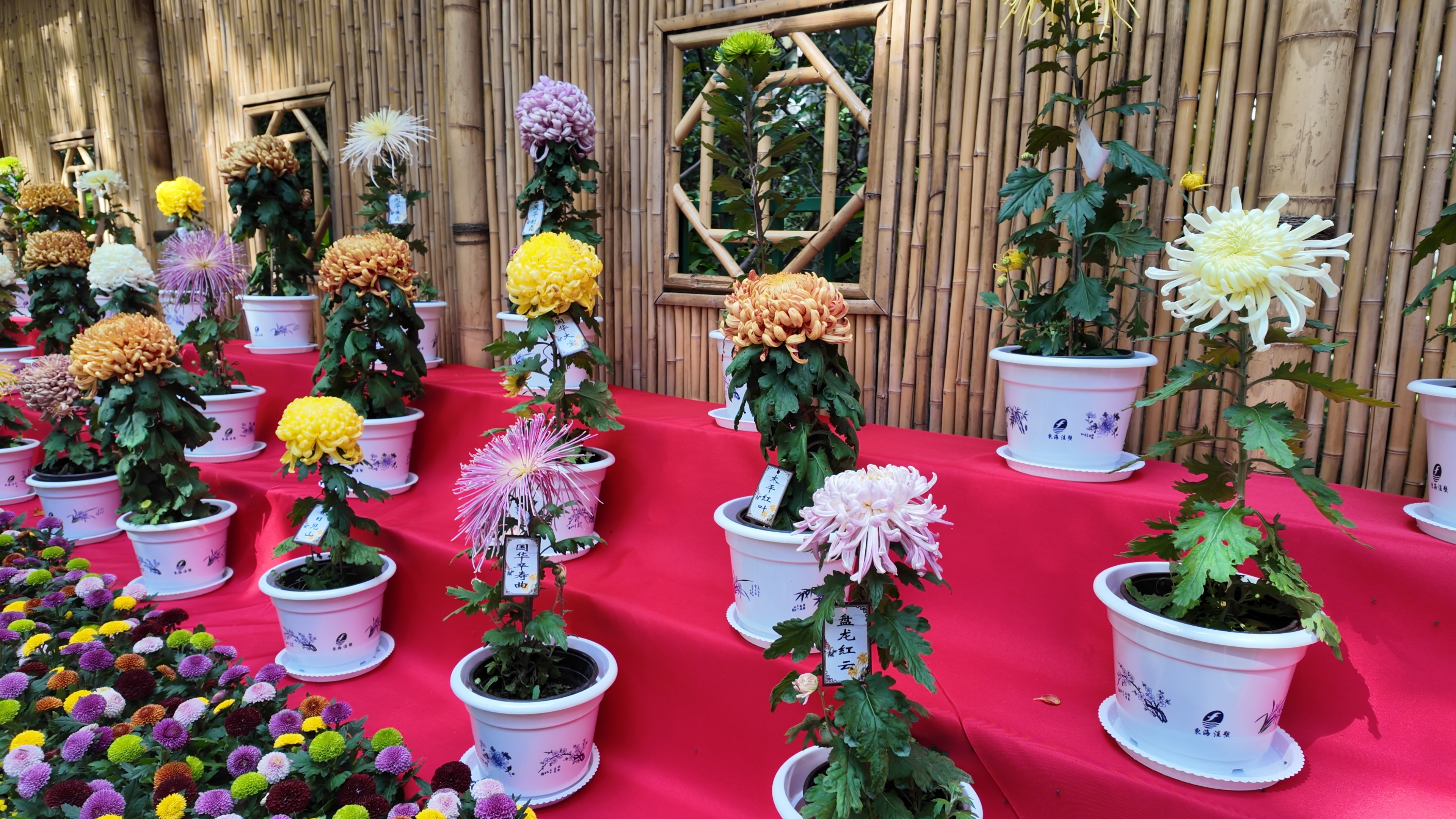 上海市级非遗“赵家花园菊花种植技艺”第八代传承人赵张永,今年带来了他精心培育的“帅旗”“越山大白”“人面桃花”“国华强大”等20个品种、70余盆菊花精品。这些形态各异、风姿绰约的菊花,在宜川公园的湖畔静静展现传统菊文化的魅力。