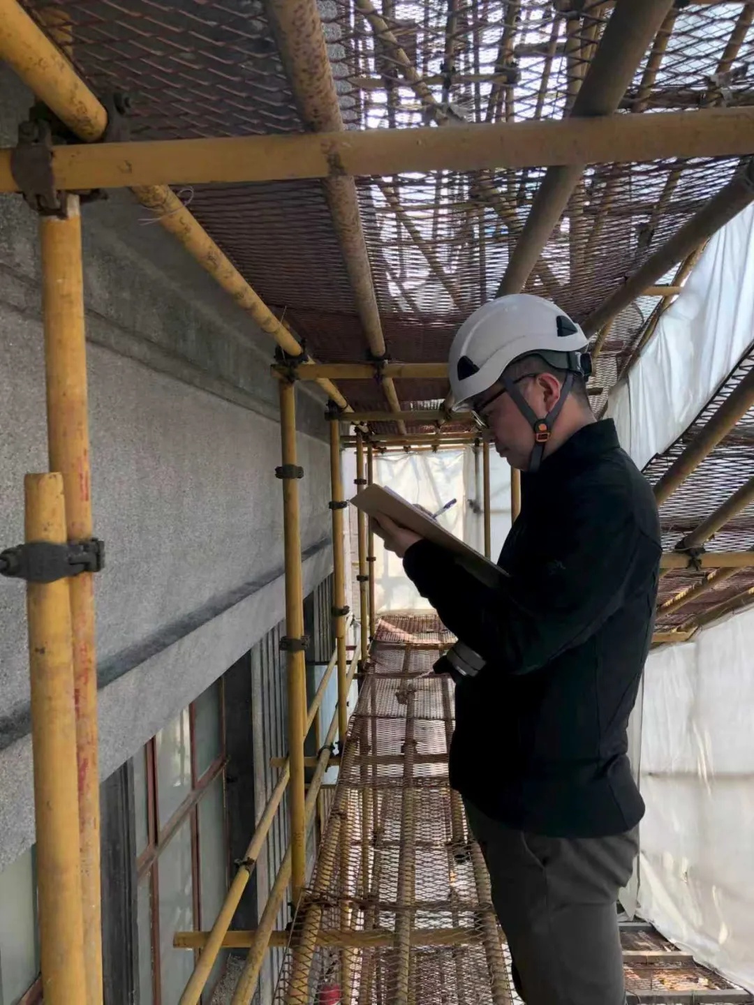 “当时剥除掉3号楼外立面上后期做的水泥抹灰时,发现这栋房子主体是红砖,但却没有规律地夹进去一些青砖,像脸上的一大片疤痕一样,并不美观。大多数人的观点都是把青砖拆掉、拿红砖补回去,或者采取贴砖片方式改成一致的红砖。当时我就思考:当年人们为什么要这样做(在红砖里面夹杂不规则的青砖)?”在这个问号的驱使下,宿新宝及其设计团队通过挖掘史料发现,1950年新中国成立初期,国民党飞机一直在轰炸杨树浦地区,目标就是杨浦电厂、杨浦水厂等市政设施,因为这些基础工业一旦瘫痪,整个城市就瘫痪了,在杨浦水厂隔壁的怡和纱厂被殃及,当时炸弹落下来就在这栋房子的附近。所以推测下来,当年在自力更生最艰苦的时候,要把被炸的厂房补起来但又没有现成的红砖,人们只能就地取材,用青砖去补砌。宿新宝说:“这恰恰从另一个角度体现了当时上海人民是怎样自力更生艰苦奋斗的,于是召开专家会,说服了所有人(不再拆青砖补红砖),大家觉得有道理。后来,我们还在外墙做了一块铭牌,把这件史实的来龙去脉讲出来,让更多人意识到保留有价值的历史修复痕迹的重要性。”