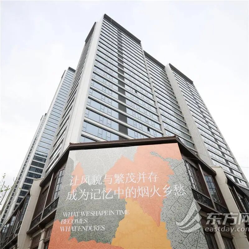地块内还有三幢高层住宅建筑拔地而起,点亮城市天际线,将老建筑的“段落”融入到新的城市语境中,完成过去与未来的融合与转换。据悉,高层住宅在2024年3月开盘,以196.5亿销售额打破全国单日开盘销售纪录;风貌住宅产品也快速清盘,成为上海首个售罄的风貌别墅项目。