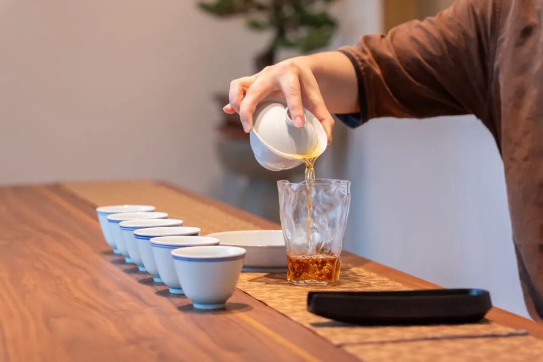 上博茶园以江西的浮梁红茶来演绎明代工夫泡茶,并用玻璃公道杯承载茶汤、用青花陶瓷杯来品茗,以便欣赏琥珀般的汤色。茶汤入口,鲜爽甘活,茶叶的本味在口中绽放。这一刻,身心全然放松,感悟明代回归自然、探寻本真的哲学。