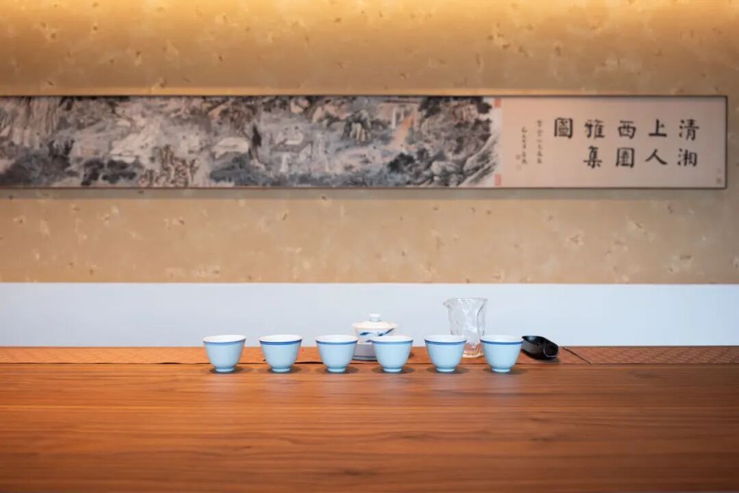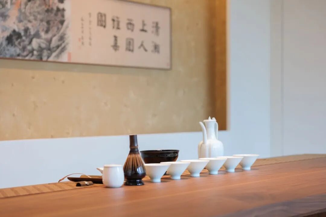 上博茶园搬来宋代的经典茶器——建盏与执壶。看茶筅击拂,茶沫渐起,如“疏星淡月”浮现于建盏中,美不胜收。搭配青白瓷斗笠盏作为品茗杯,让宾客品尝云朵般沫饽的细腻绵密。整个过程,身心随之沉静,穿越千年赏宋式风雅,体味宋人格物致知的精神意趣。