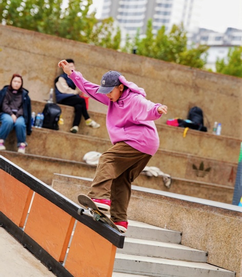 本届赛事旨在积极响应国家促进青少年身心健康、体魄强健的号召,推动极限运动在青少年群体中的普及与发展,发掘和培养有潜力的滑板后备人才。赛事设立A组和B组,小将们参与了综合障碍赛、街式赛和大招赛的角逐,考验他们的综合技巧与线路运用能力,展现了高超的滑板技艺与勇于挑战的极限精神。