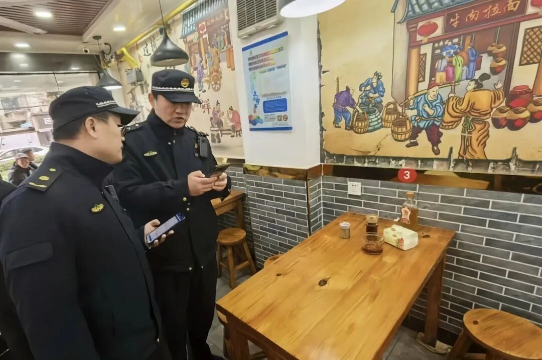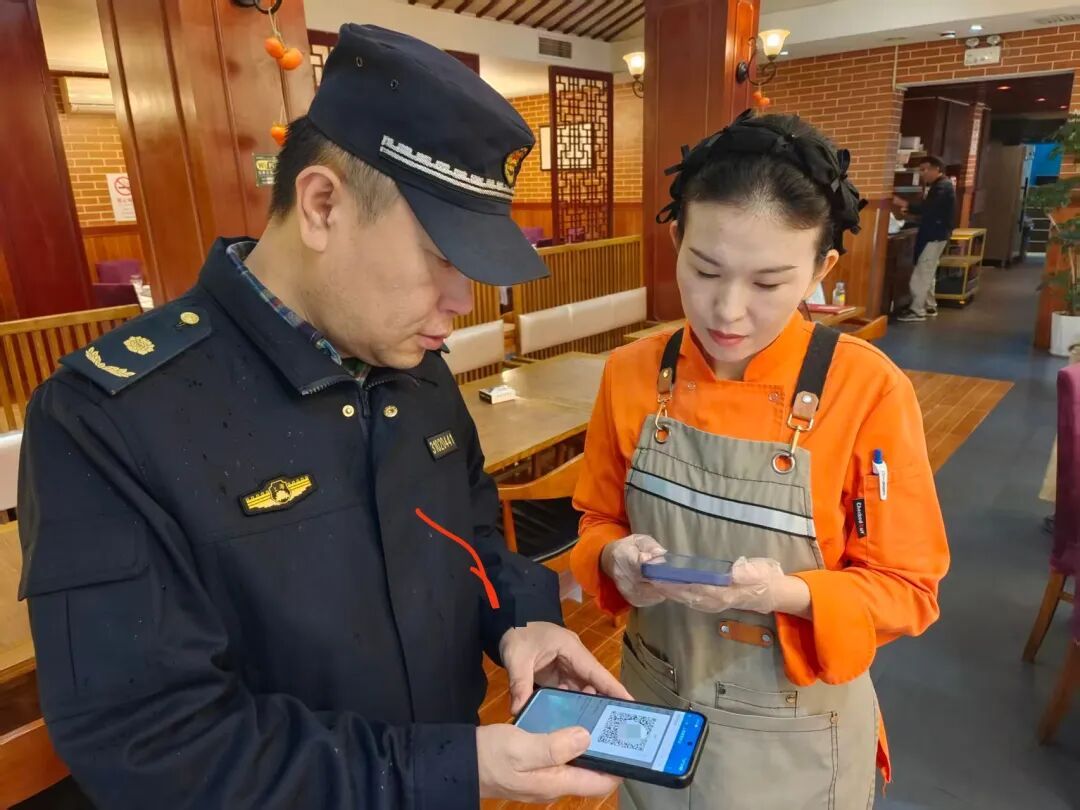 “滴”的一声,某餐饮店老板用手机扫了扫城管执法队员出示的二维码,这可不是在买单,而是一种全新的“扫码检查”执法现场。