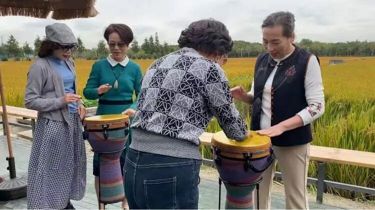 近日,记者来到欢喜小院,推开小院的巨大木窗,连片金黄色的稻田与湛蓝天空构成天然油画,偶有鸟群掠过,为静坐窗边的食客定格下动态美景。“我们是看到这家店在网上的视频,从市区慕名而来,地铁+公交+11路步行,单程近3个小时。”几位阿姨正在一边嗑瓜子聊天,一边等待他们的咖啡。小院外,另外几位阿姨在敲打非洲鼓,逗弄一只柯尔鸭,“我们也是第一次来,退休了有时间,刚刚去兜了‘浦江之首’景区,到这里来喝杯咖啡,歇一歇。”
