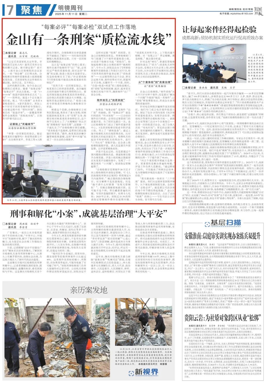 在金山区检察院,“案件质检”从来不只针对单个案件,而是要从“解决一个问题”升级到“规范一类案件”,让“质检”释放乘数效应,形成全生命周期的质量闭环。