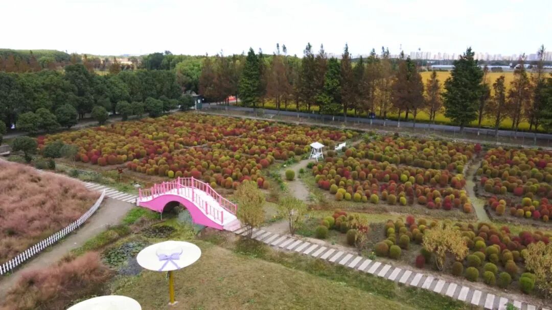 “地肤现已进入最佳观赏期,将持续至12月中旬。”嘉北郊野公园工作人员吴春艳介绍,今年园内还种植了约6亩的向日葵、百日草等其他花卉,它们与地肤相映成趣,共同组成一幅别样的秋日美景。