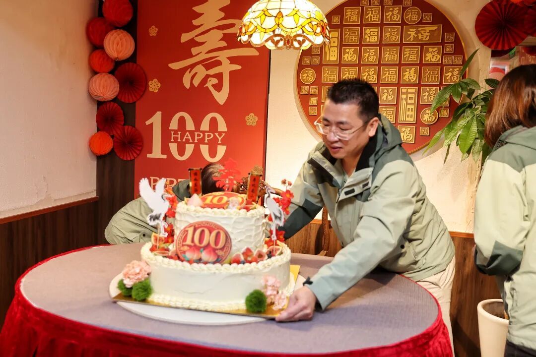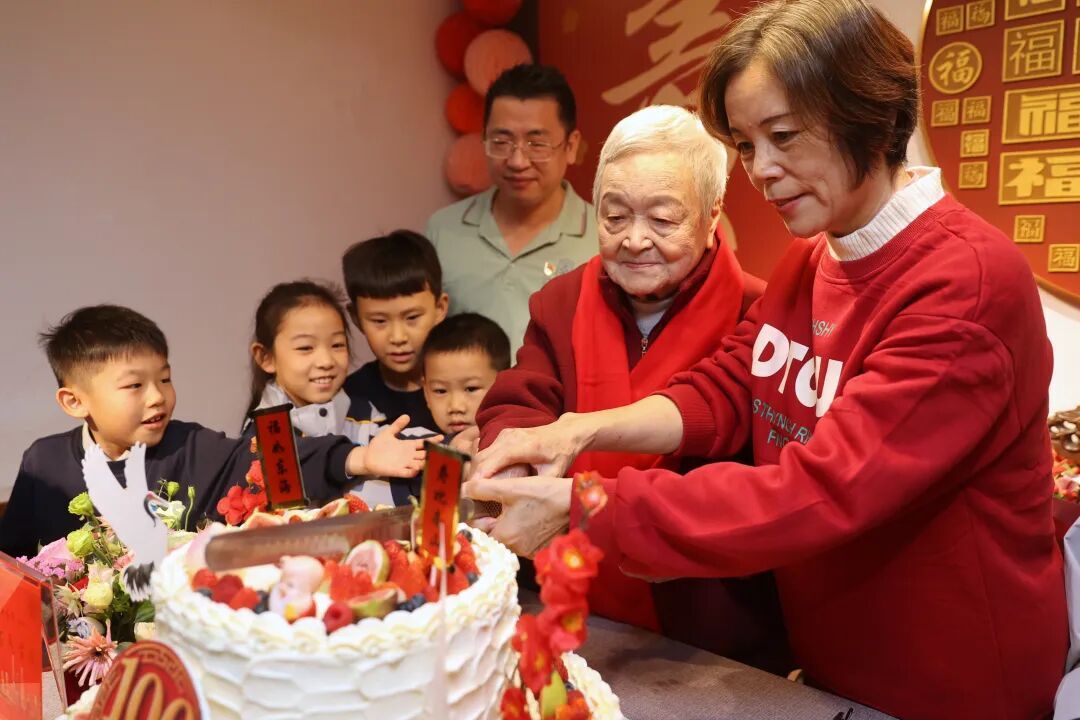 百岁老人为蛋糕切下第一刀
